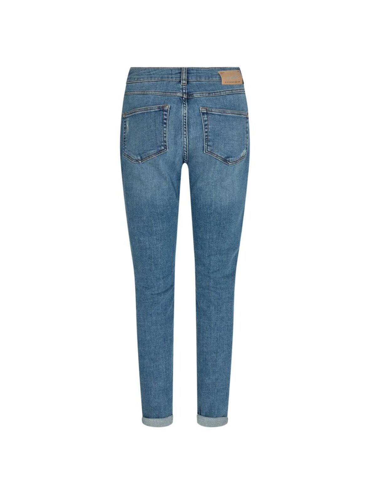 Cool bukser fra Mos Mosh med fede detaljer. Bukserne er designet i en skøn lyseblå vask med detaljer ved lommerne, knappe- og lynlåslukning samt to baglommer.