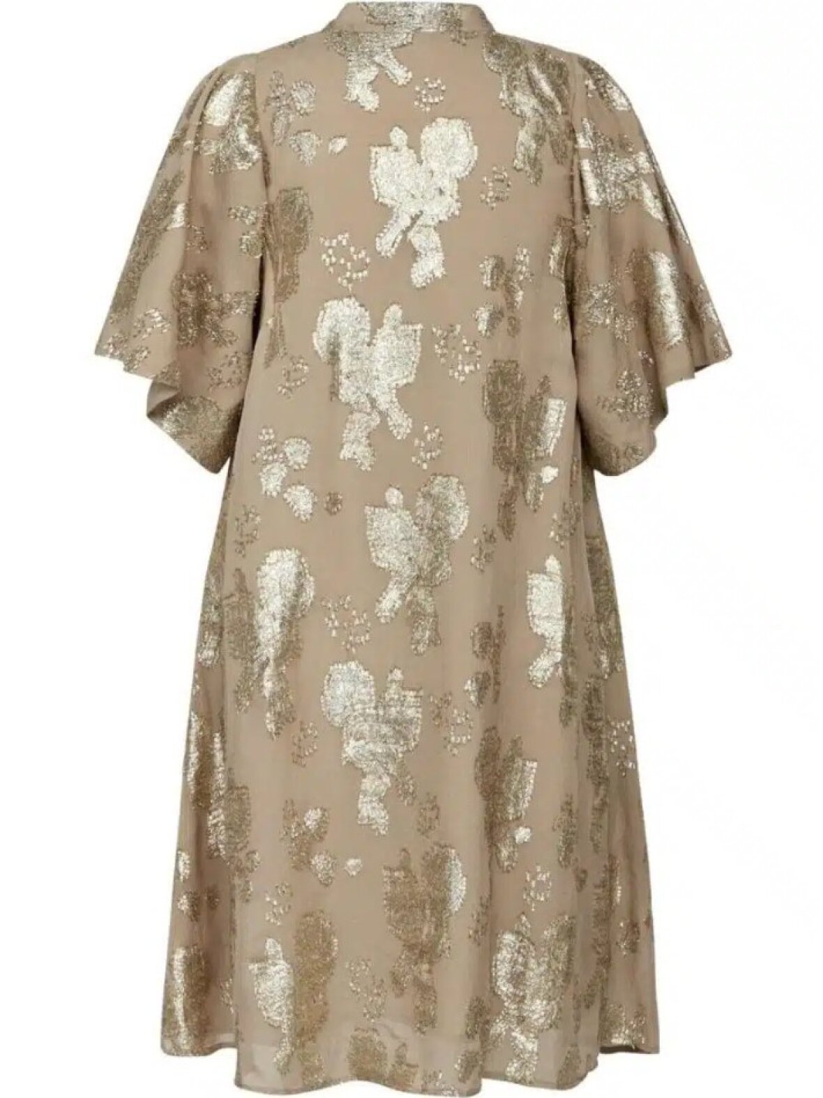 Farve: 65% Bæredygtig Viskose, 35% Metallisk Fibre. Kjolen er foret med 100% Viskose.