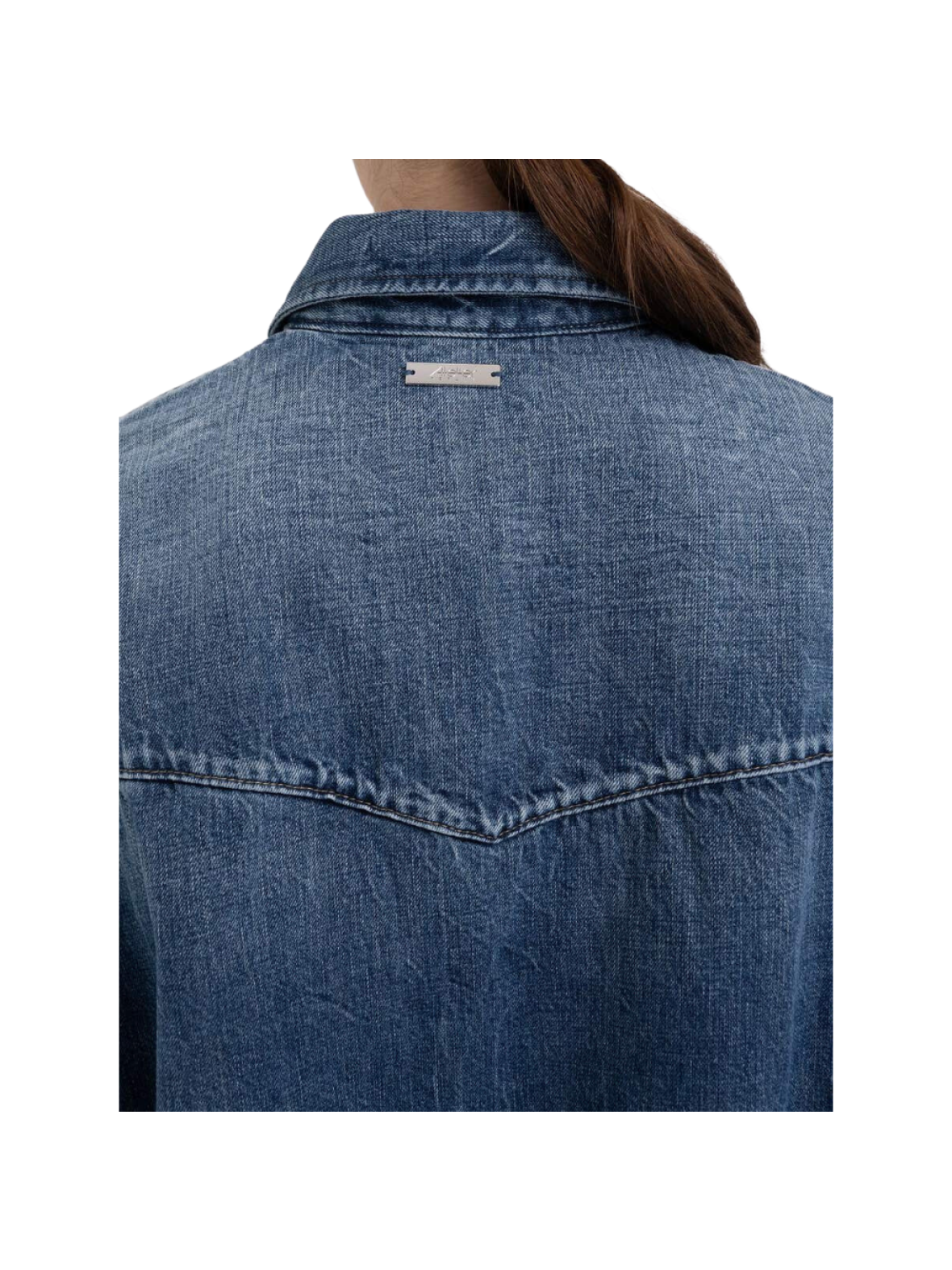 Langærmet denim jakke fra Replay. Jakken kan bruges åben med en fed t-shirt under eller lukket som en skjorte. Skjortejakken er designet med cropped pasform, brystlommer, knappelukning og mulighed for at knappe ærmerne op.