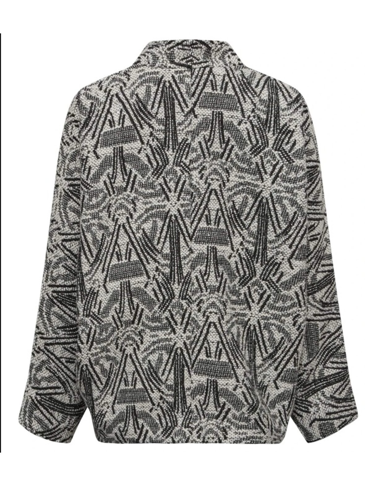 Flot ønstret jakke fra Gossia. Jakken har en oversized pasform og er i en i uldblanding og det fineste strikkede mønster af sort og hvid.