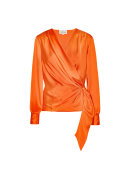 Smuk og feminin bluse fra Karmamia Copenhagen. Blusen er designet i den blødeste kvalitet og har v-udskæring, posede ærmer og en satinstrop, som gør taljen super smuk.
