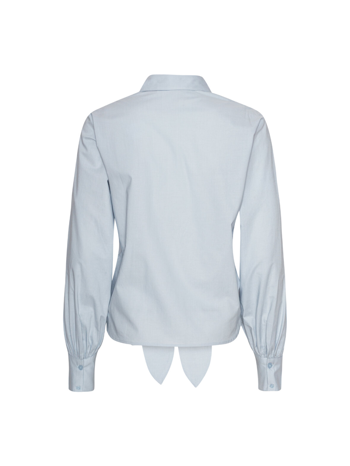 Fineste skjorte bluse fra Karmamia Copenhagen. Skjorten er i en lækker blød og let kvalitet. Er med lange løse ærmer, krave og skjult knaplukning ned foran. Skjorten har flot bånd foran, som giver en smuk detalje og fremhæver din figur.