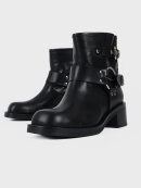 Cool biker støvle fra Bukela. Støvlerne er sorte med sølv nitter og spænder. Støvlen er med kort skaft og har en afrundet firkantet snude, samt lavet i en lækker blød skindkvalitet.
