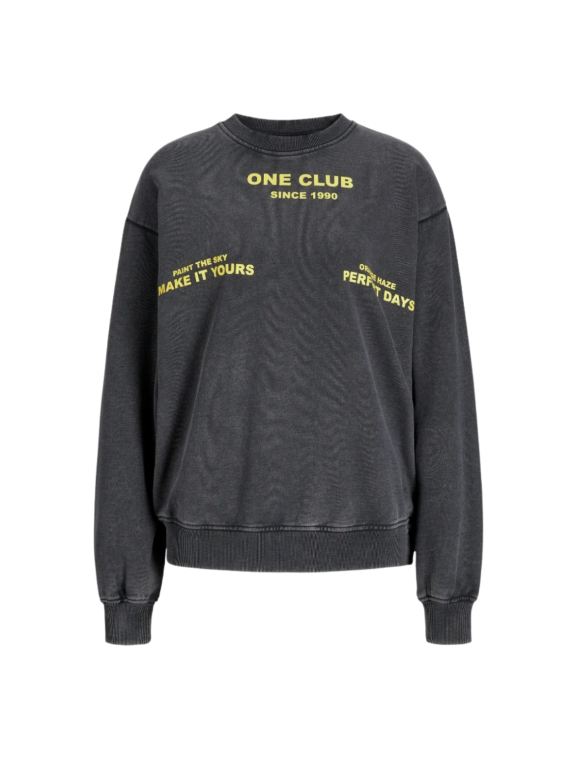 Cool sweatshirt fra JJXX. Sweatshirten er i cool sort/grå vask med gul tekst.