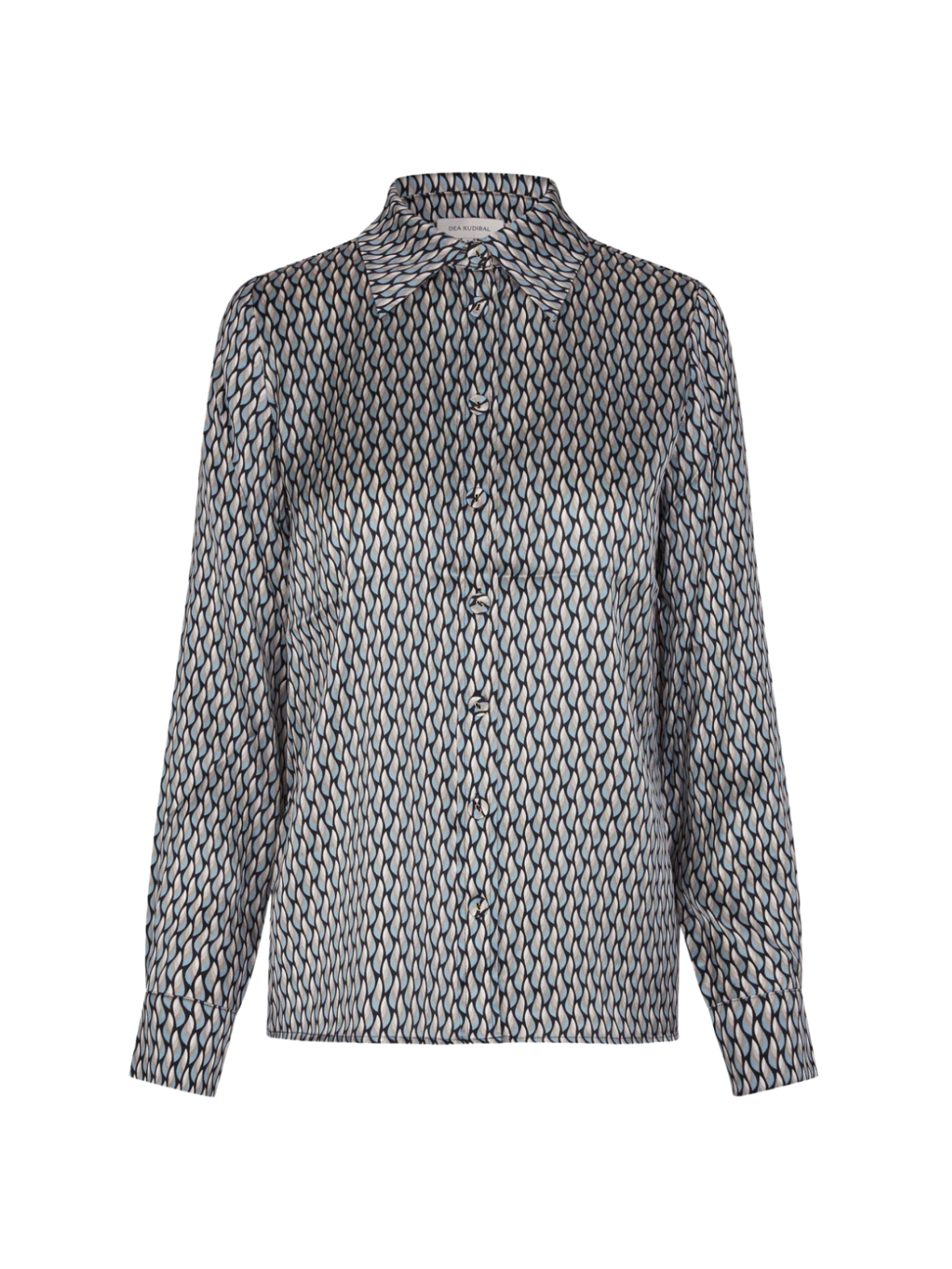 Elegant skjorte med et grafisk mønster, der giver et moderne og sofistikeret udtryk. Designet med klassisk krave, gennemgående knaplukning og lange ærmer med manchetter for et tidløst look. Den lette kvalitet sikrer et flot fald og høj komfort. Perfekt til både kontorbrug og stilfulde hverdagsoutfits.