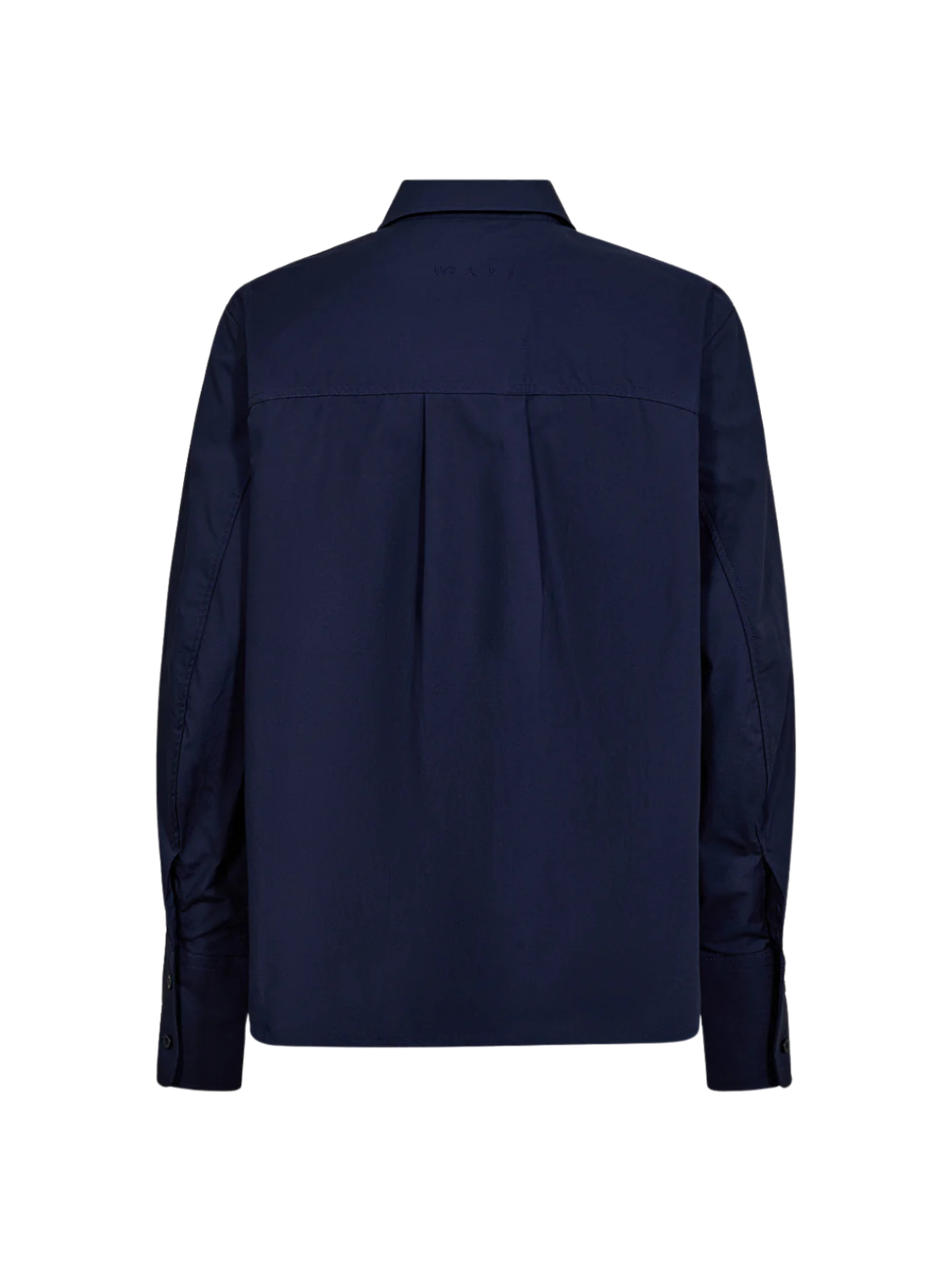 Klassisk skjorte i en dyb navy blå nuance med et tidløst og elegant udtryk. Den let løse pasform og de lange ærmer giver en flot silhuet, mens kraven og knaplukningen tilfører et stilrent, klassisk touch. En alsidig style, der passer perfekt til både hverdag og mere formelle anledninger. Style den med jeans for et afslappet look – eller med habitbukser og blazer for en sofistikeret og moderne styling.