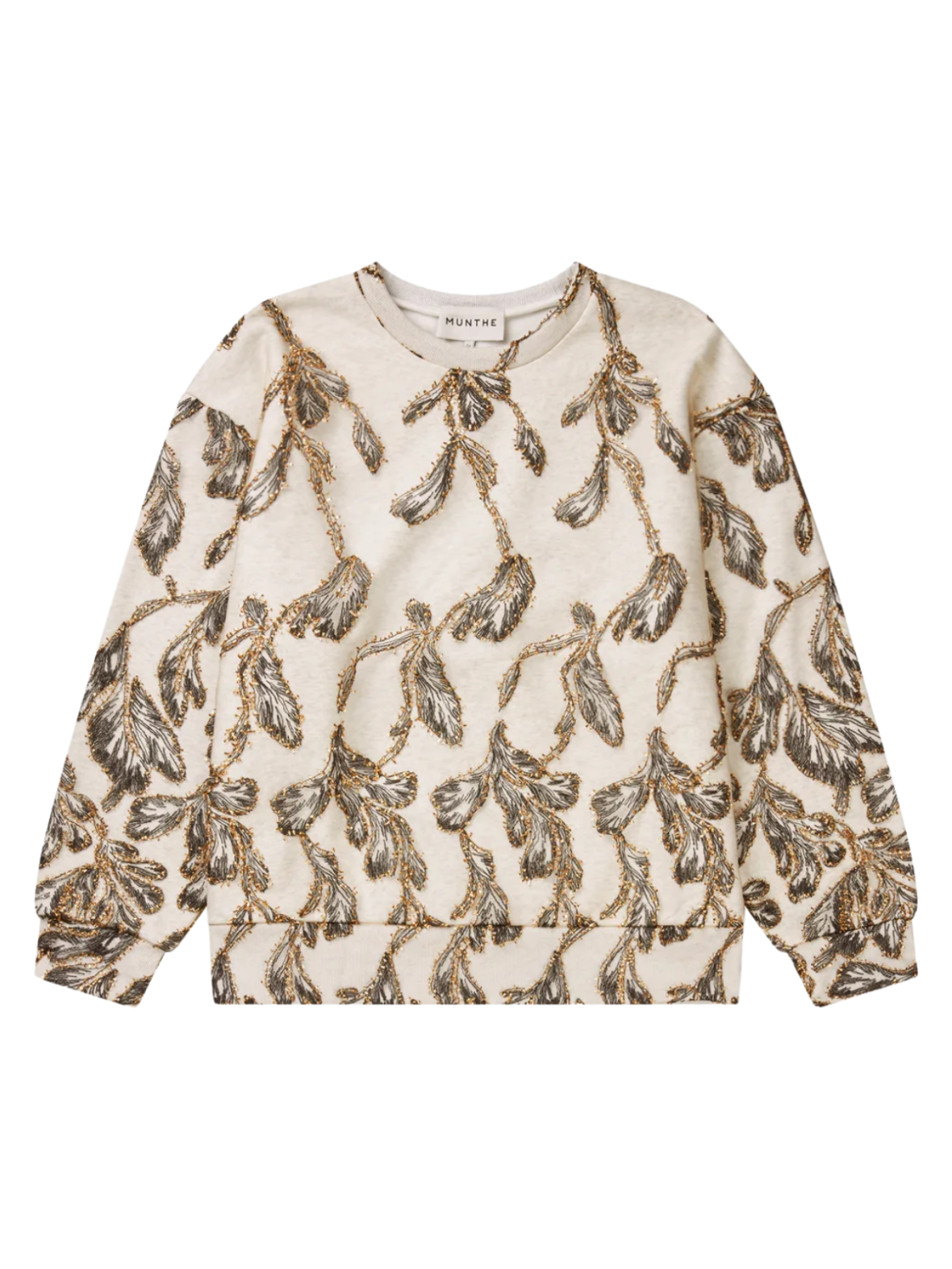 Denne unikke bluse er et statement-piece, der kombinerer komfort med luksuriøse detaljer. Den hvide base er dekoreret med kunstfærdigt broderi i sort og guld, der giver et eksklusivt udtryk.