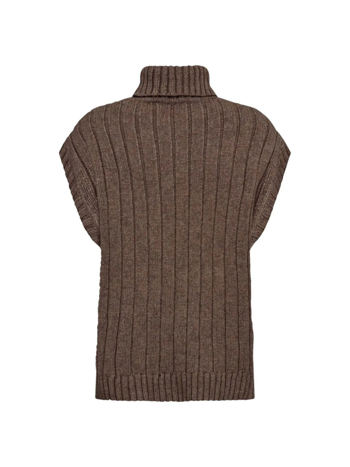 Denne strikvest fra Co'Couture er en moderne favorit med sit chunky kabelstrik og høje rullekrave. Den oversized pasform gør den perfekt til lag-på-lag styling over skjorter eller kjoler. Brug den med jeans og støvler for et afslappet look, eller style den med en nederdel og støvler for en mere chic vibe. En hyggelig og stilfuld vest, der passer perfekt til sæsonens kolde dage.