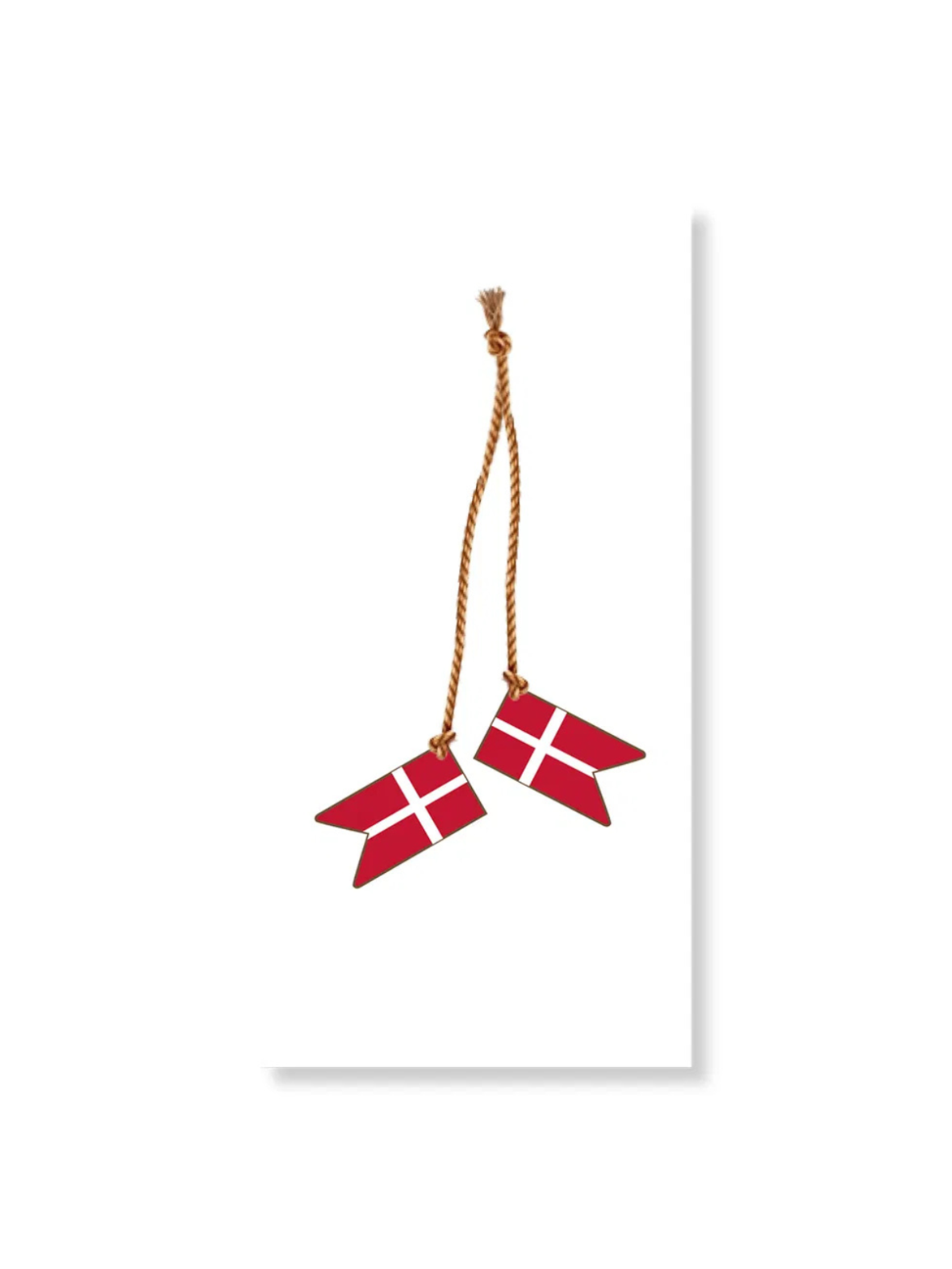 Denne papirserviet er dekoreret med to små dannebrogsflag i snor, som giver et enkelt og festligt udtryk. Den er ideel til fødselsdage, jubilæer eller andre anledninger, hvor dansk hygge og tradition er i fokus.'