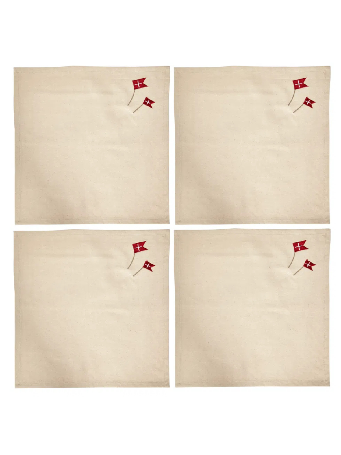 Disse festlige stofservietter i naturfarvet bomuld er dekoreret med små dannebrogsflag i hjørnet, som giver et klassisk og hyggeligt udtryk. Perfekte til fødselsdage, konfirmationer eller andre fejringer, hvor bordet skal dækkes med personlig charme.