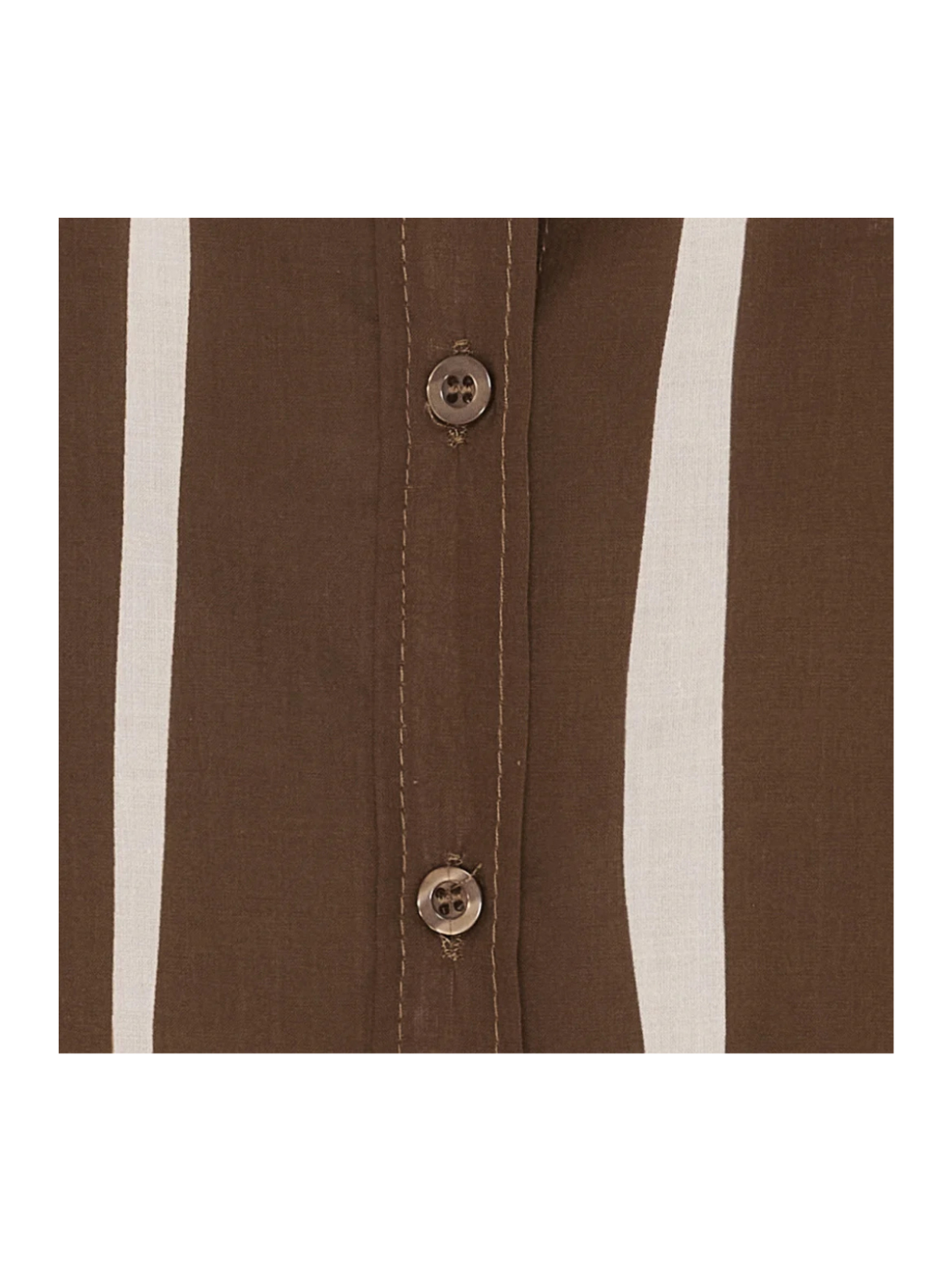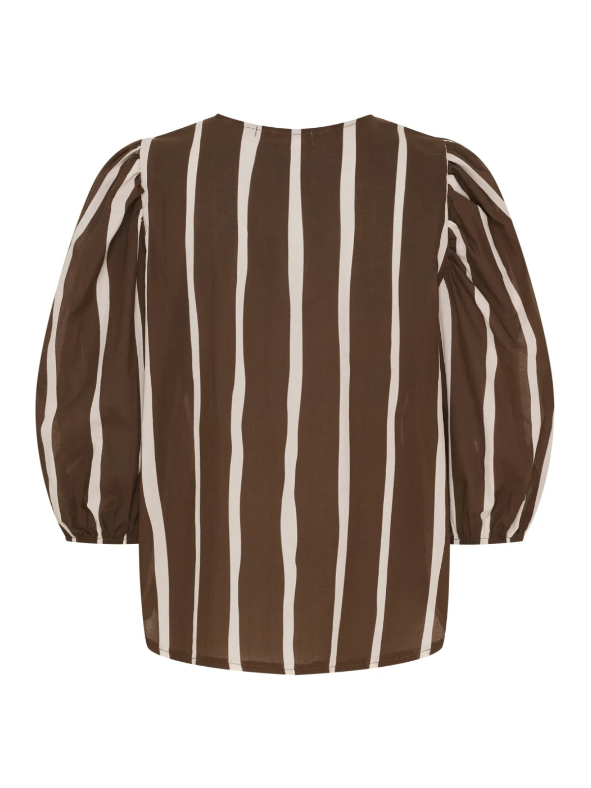 Denne bluse fra Marta du Château er designet med brede striber i brun og hvid, der giver et friskt og moderne udtryk. Modellen har rund hals, knaplukning foran og let puffede ærmer, som tilfører et feminint touch. Brug den med jeans for et casual hverdagslook eller style med en nederdel og støvler for et mere elegant outfit. En alsidig style, der nemt kan dresses op eller ned.