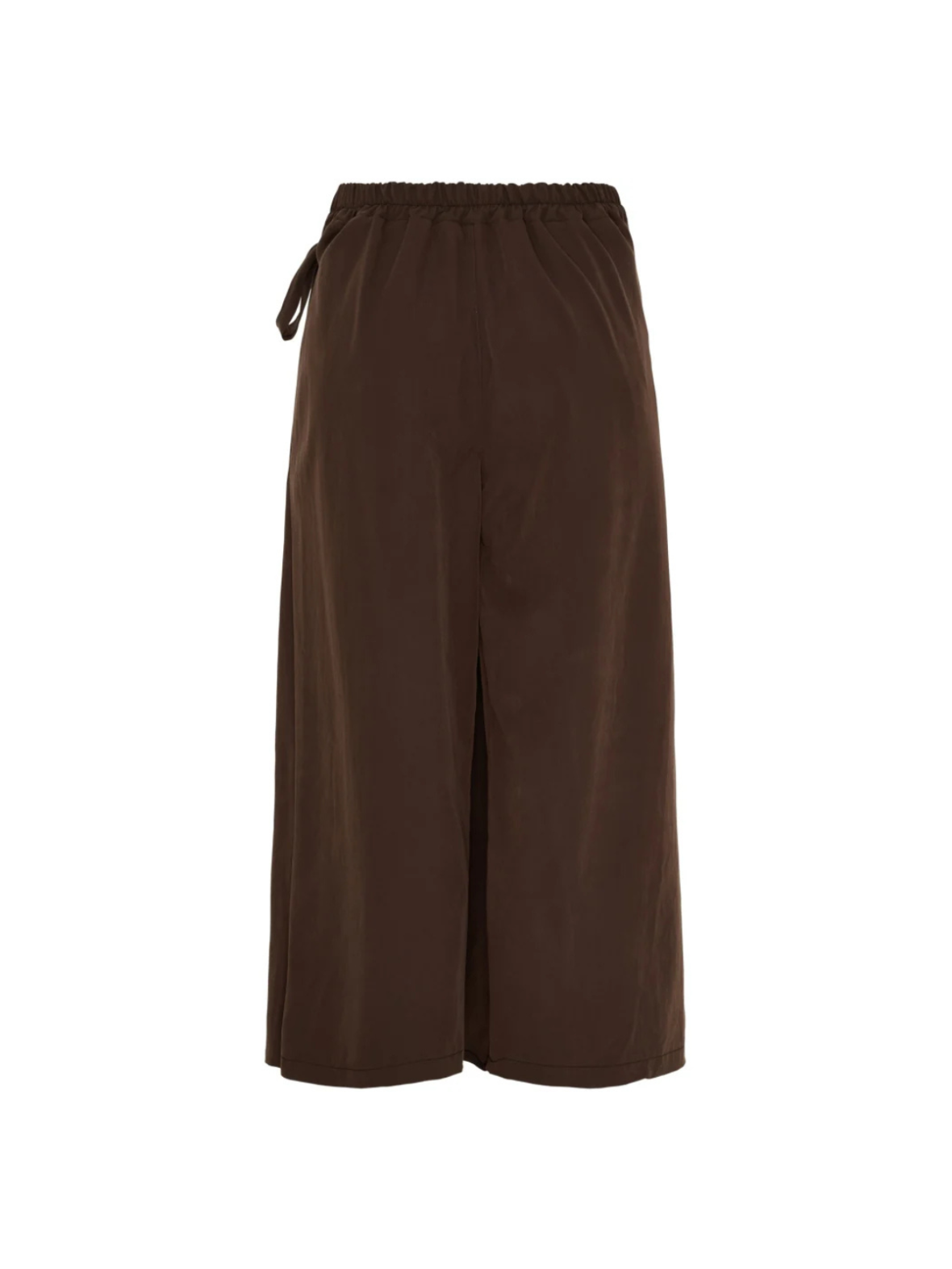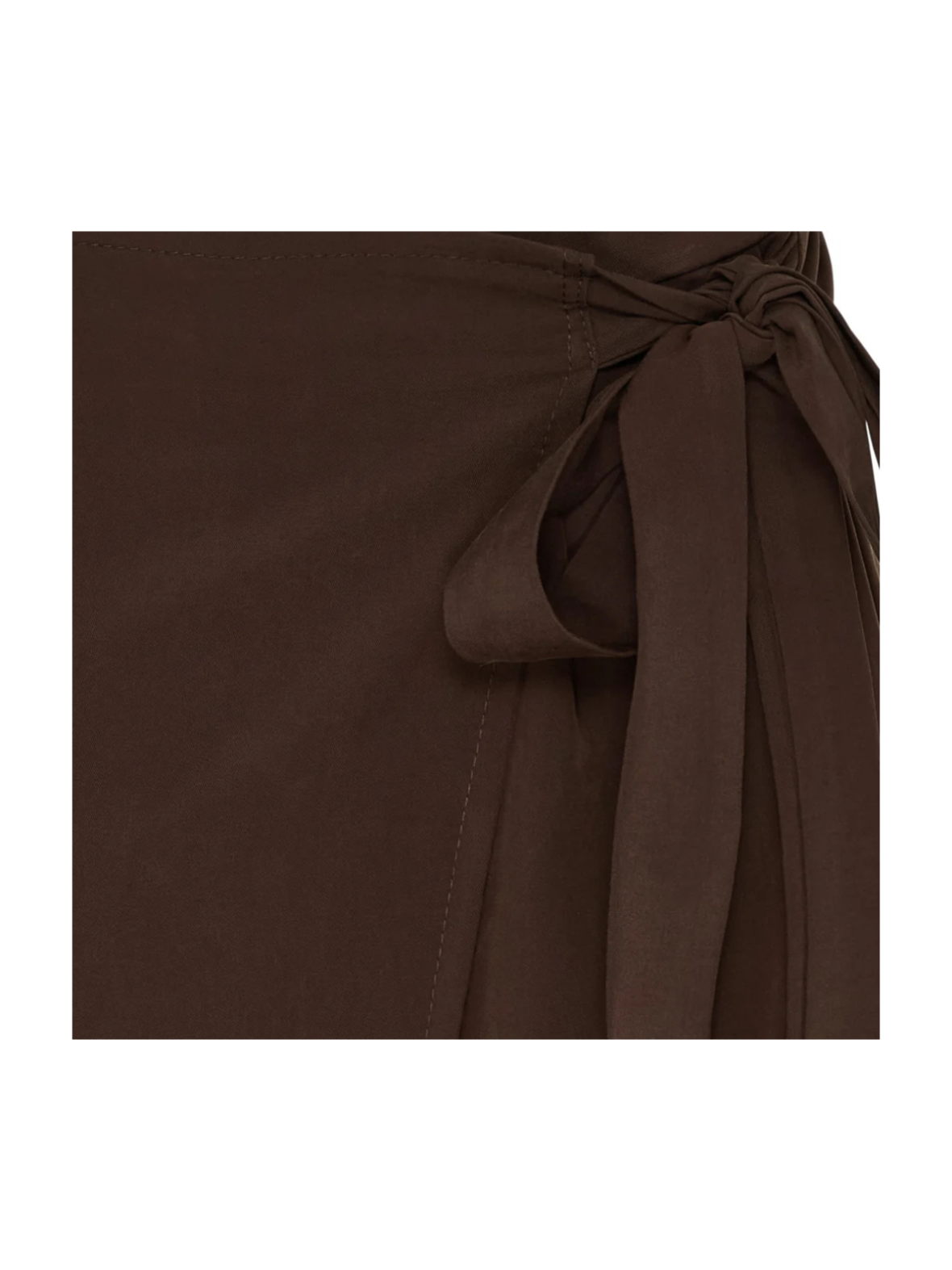 Denne slå-om buks fra Marta du Château er en enkel og elegant style i en dyb brun nuance. Det justerbare bindebånd i taljen giver en flatterende pasform og gør den nem at style til både hverdag og fest. Brug dem med en let skjorte og sandaler for et afslappet sommerlook, eller kombiner med strik og støvler til efteråret. En tidløs garderobeklassiker med mange stylingsmuligheder.