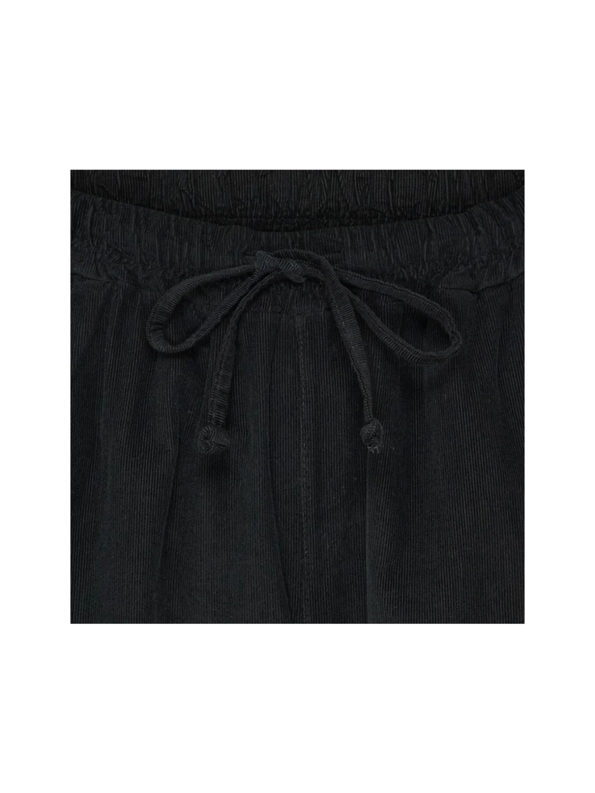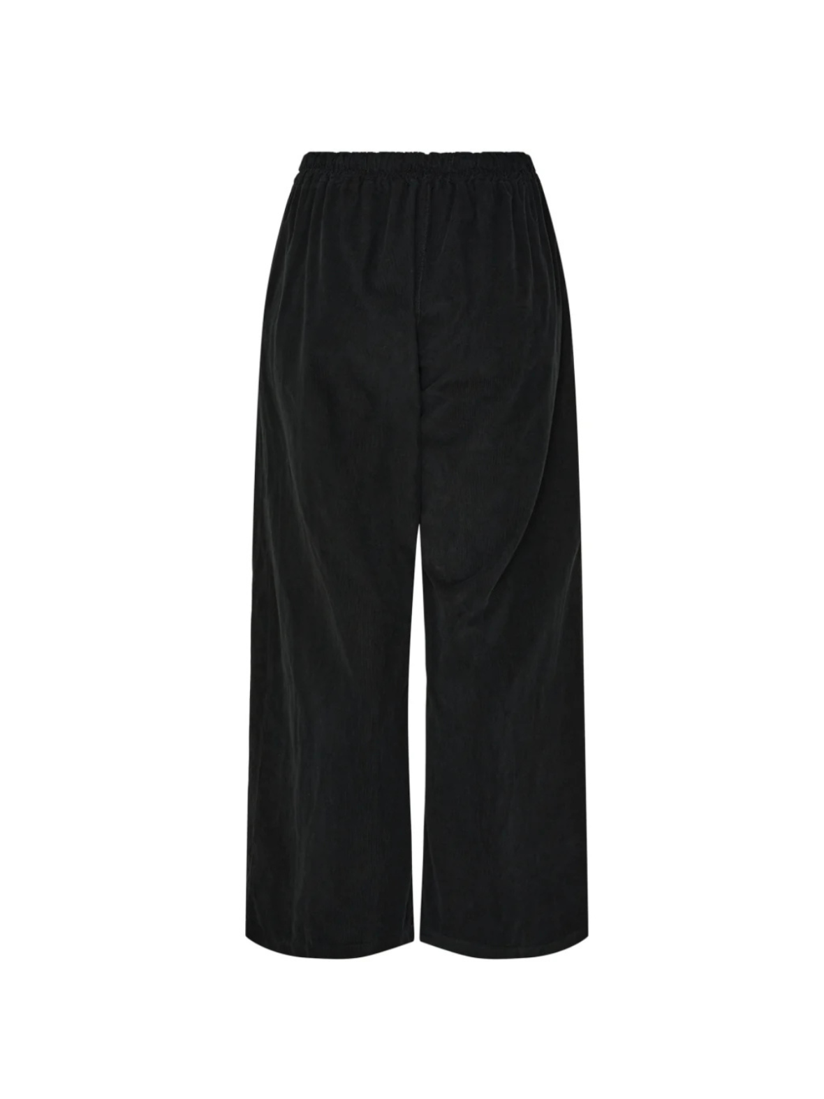 Disse sorte bukser er et tidløst valg med afslappet pasform og justerbar elastik i taljen. Det brede ben giver et moderne og komfortabelt udtryk, som nemt kan styles til både hverdags- og weekendlooks. Brug dem med en enkel T-shirt og sneakers for et afslappet outfit, eller kombiner dem med en elegant bluse og støvler for et mere chic look. Et alsidigt must-have i garderoben.