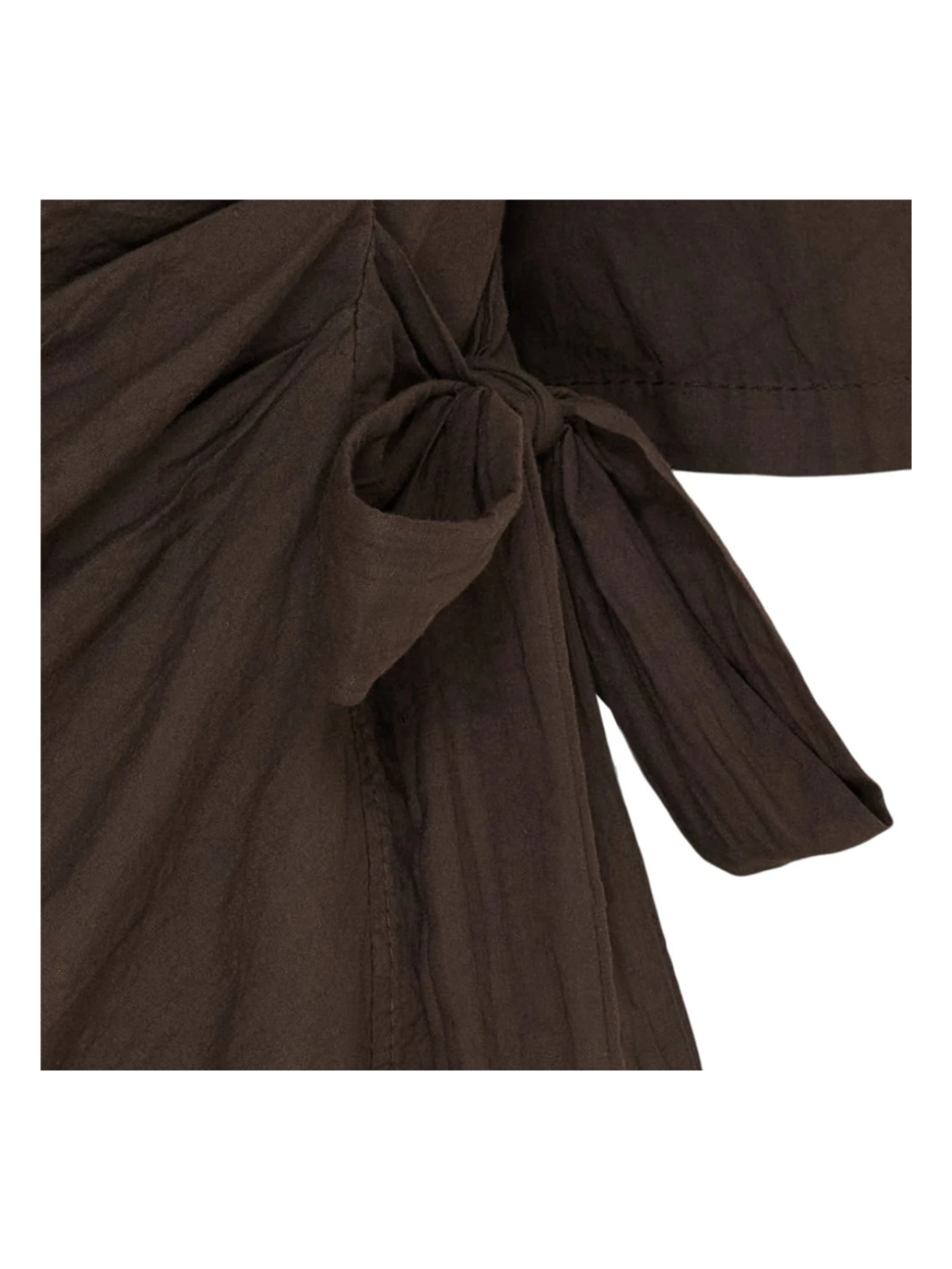 Denne bluse fra Marta du Château er en stilfuld model i en dyb brun nuance med fine detaljer. Designet har rund hals, halvlange ærmer og en flatterende knudedetalje i siden, der giver et asymmetrisk og moderne udtryk. Perfekt til både hverdag og fest – style den med jeans for et casual look eller med nederdel og hæle til mere elegante anledninger. En feminin bluse med et unikt twist.