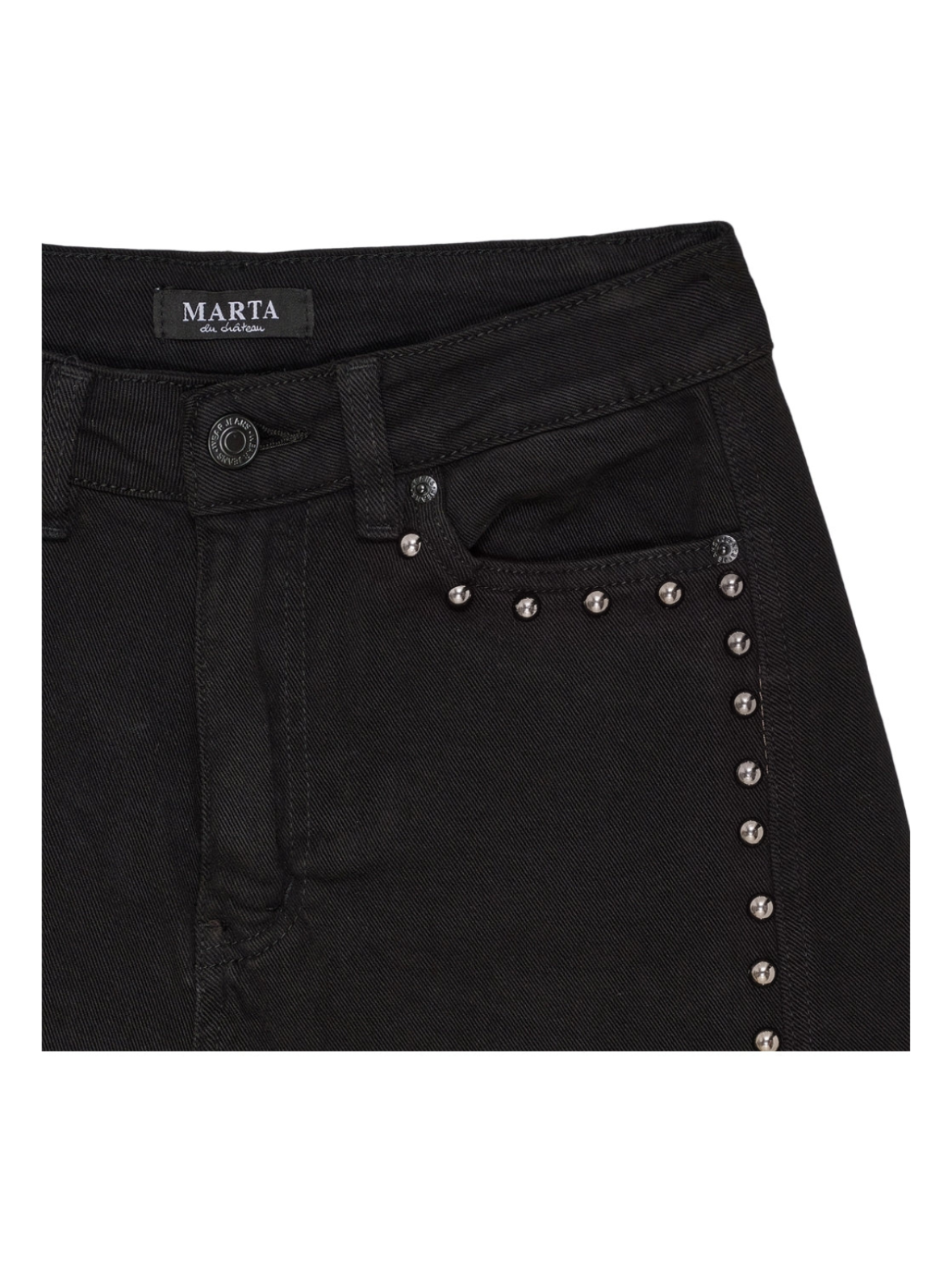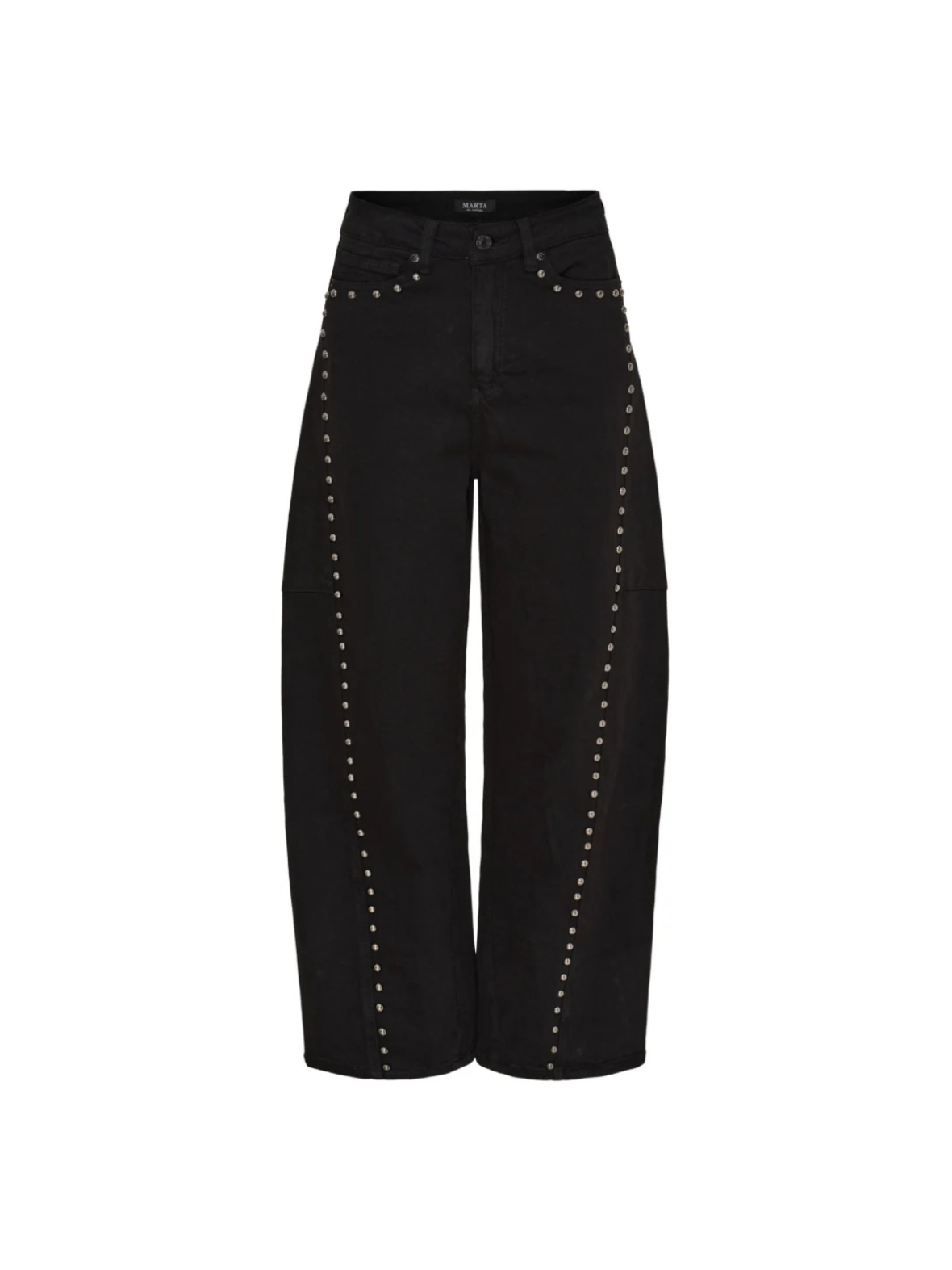 Disse jeans fra Marta du Château er et cool bud på hverdagsdenim med kant. Den sorte model er detaljeret med nitter langs benene, som giver et råt og moderne udtryk. Den brede pasform sikrer komfort, samtidig med at de kan styles både casual med sneakers og t-shirt eller mere festligt med en feminin top og støvler. Et par statement-jeans, der skiller sig ud i garderoben.