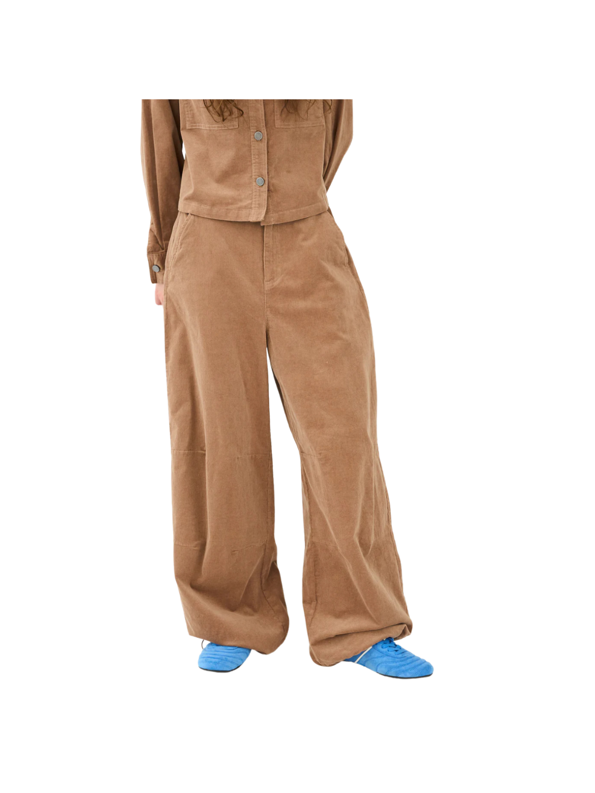 Cool bukser i blød fløjlskvalitet i en varm brun nuance med et afslappet og moderne udtryk. Den løse, vidde pasform giver masser af bevægelse og komfort, mens de rene linjer skaber en stilren silhuet. Et perfekt valg til et casual, men stadig gennemført look. Style dem med en strik eller skjorte for et afslappet outfit – eller med matchende overdel for et trendy og sammenhængende sæt.