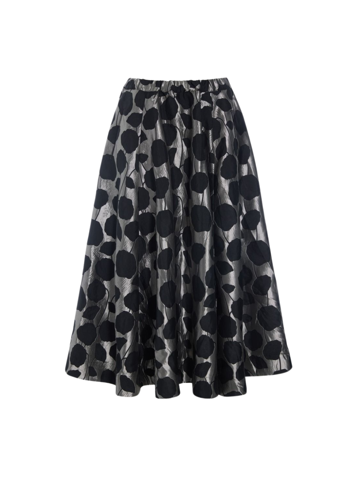 Iøjnefaldende nederdel i sort og grå med et kunstnerisk mønster, der giver et moderne og elegant udtryk. Den elastiske talje sikrer en behagelig pasform, mens den lette kvalitet skaber et flot, fyldigt fald. Designet med vidde, der giver bevægelse og et feminint look. Perfekt til både hverdagsbrug og festlige anledninger.