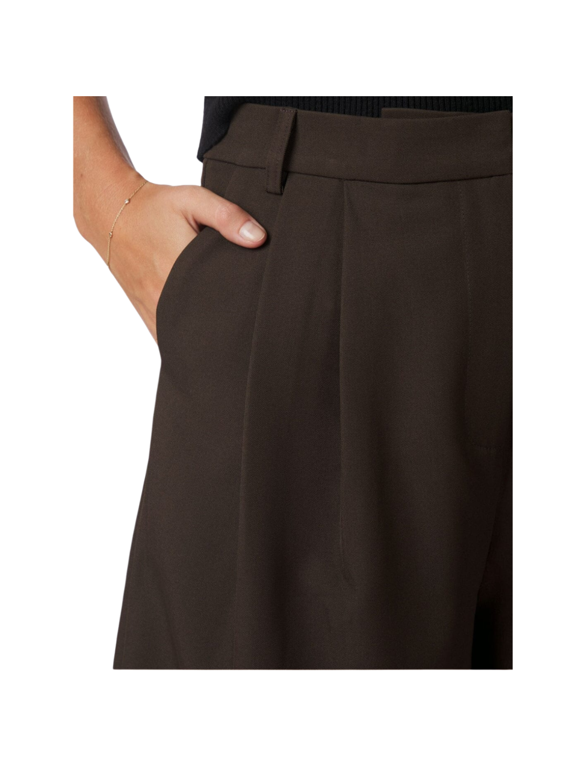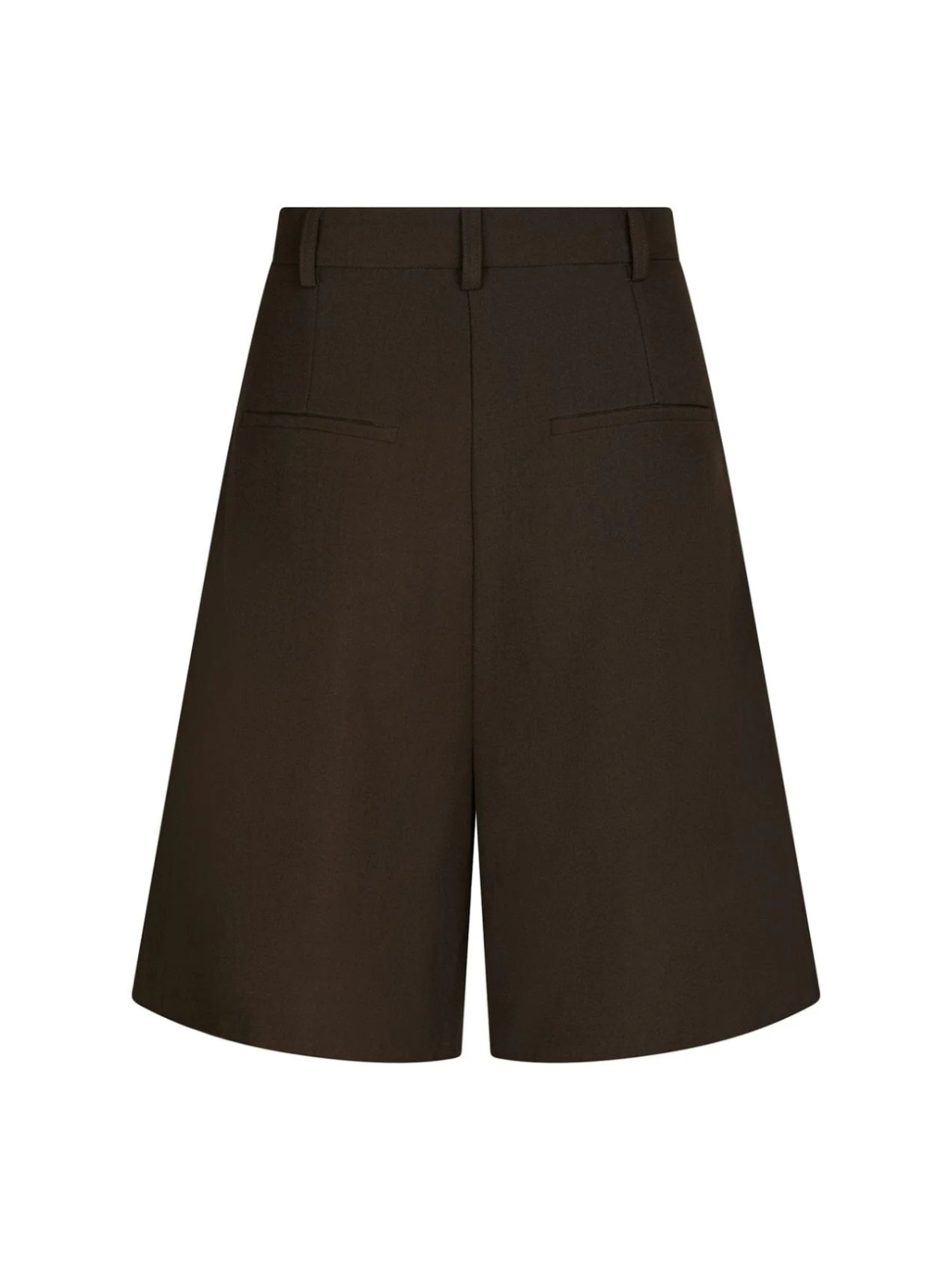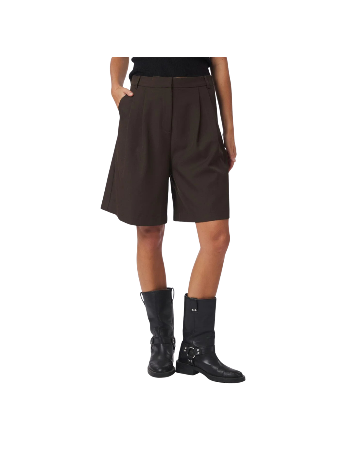 Disse mørkebrune shorts har et elegant og struktureret design med en let, løs pasform, der giver et sofistikeret udtryk. De højtaljede shorts har fine pressefolder foran, som skaber en pæn silhuet. Perfekte til både hverdag og mere dressed-up looks