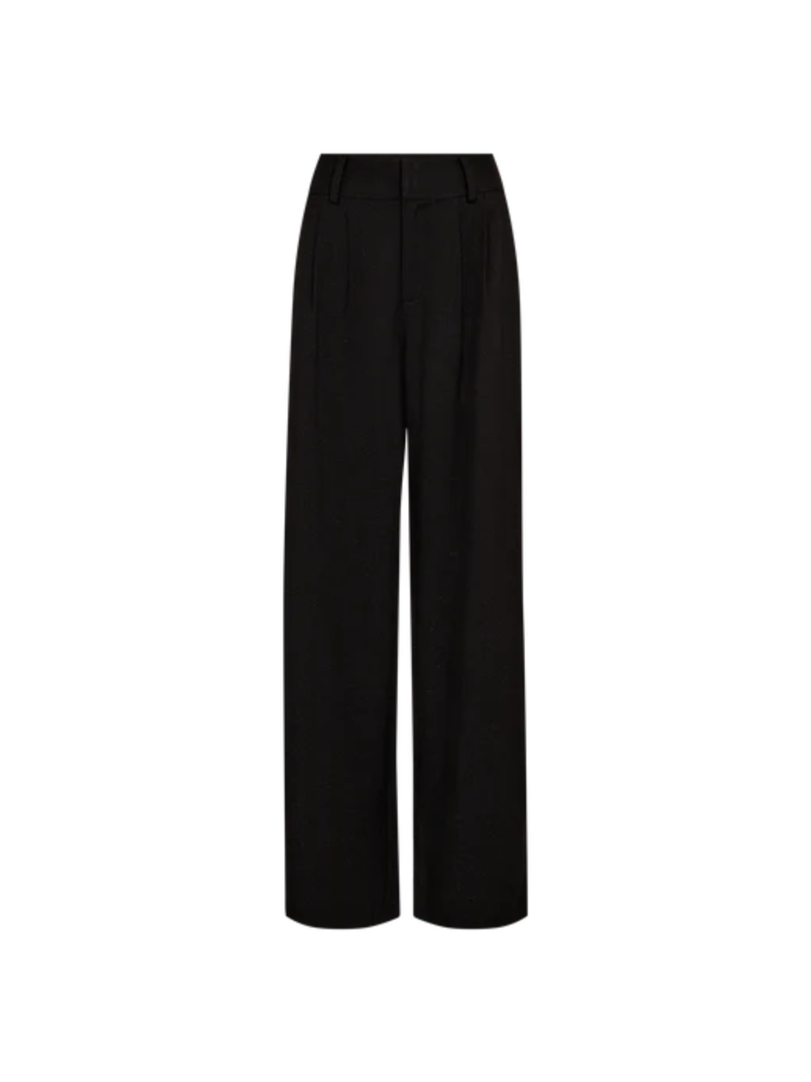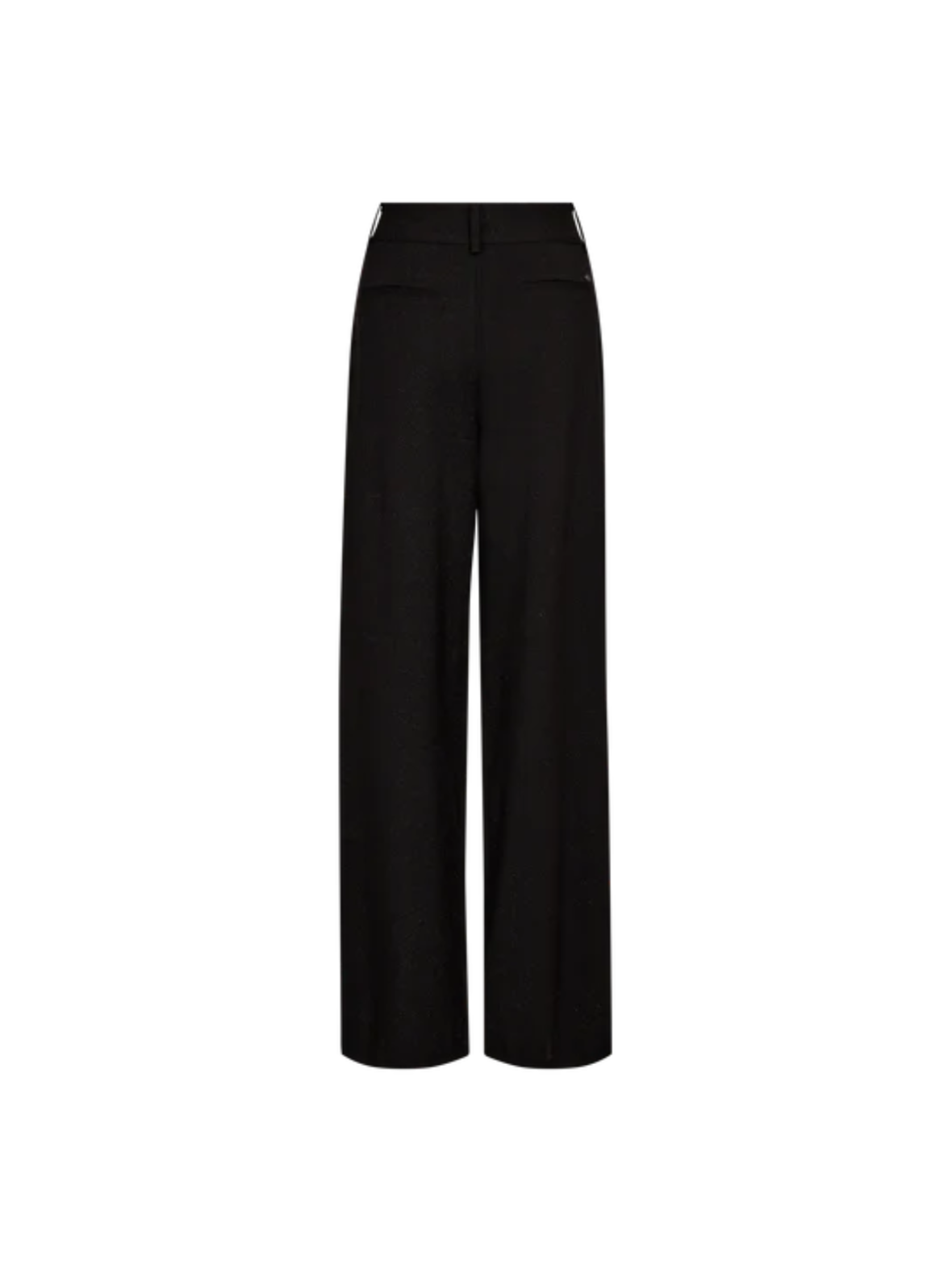 Sorte bukser med et klassisk og elegant snit. De har en lige, let vid pasform og et enkelt udtryk, der gør dem nemme at style både til hverdag og mere formelle anledninger. Bukserne giver et sofistikeret look og fungerer perfekt sammen med både skjorter, strik og bluser.