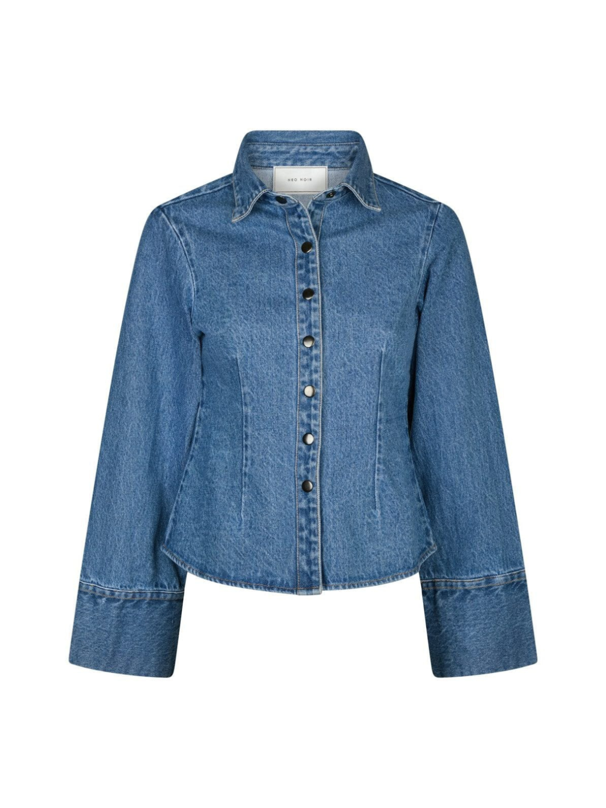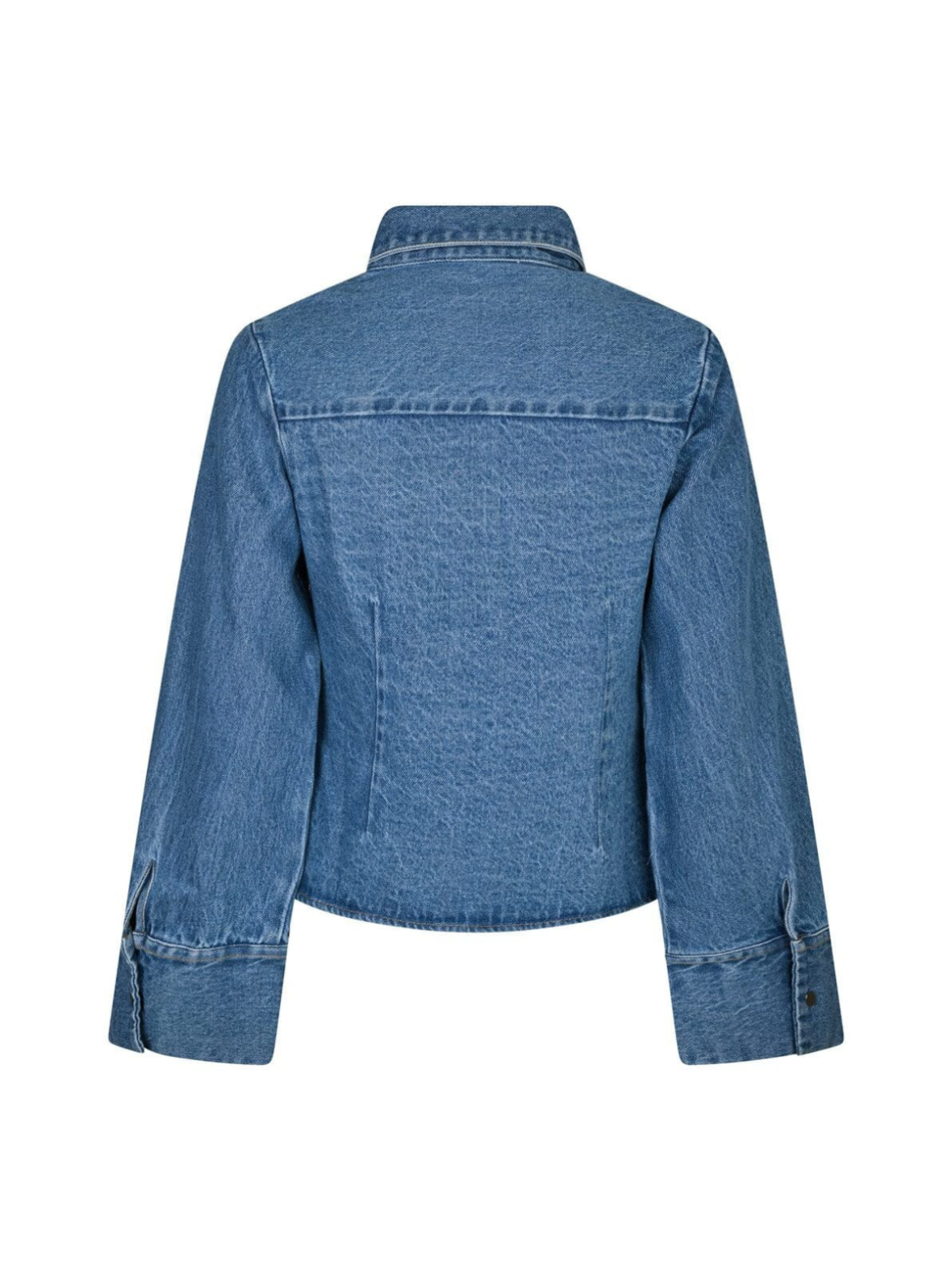 Denne denimskjorte i vintageblå har et moderne og feminint snit med markeret talje og brede manchetter. De klassiske trykknapper giver et cool touch, mens pasformen gør den ideel både som skjorte og let jakke. Style den med matchende jeans for et trendy denim-on-denim look eller med en nederdel for et mere afslappet udtryk.
