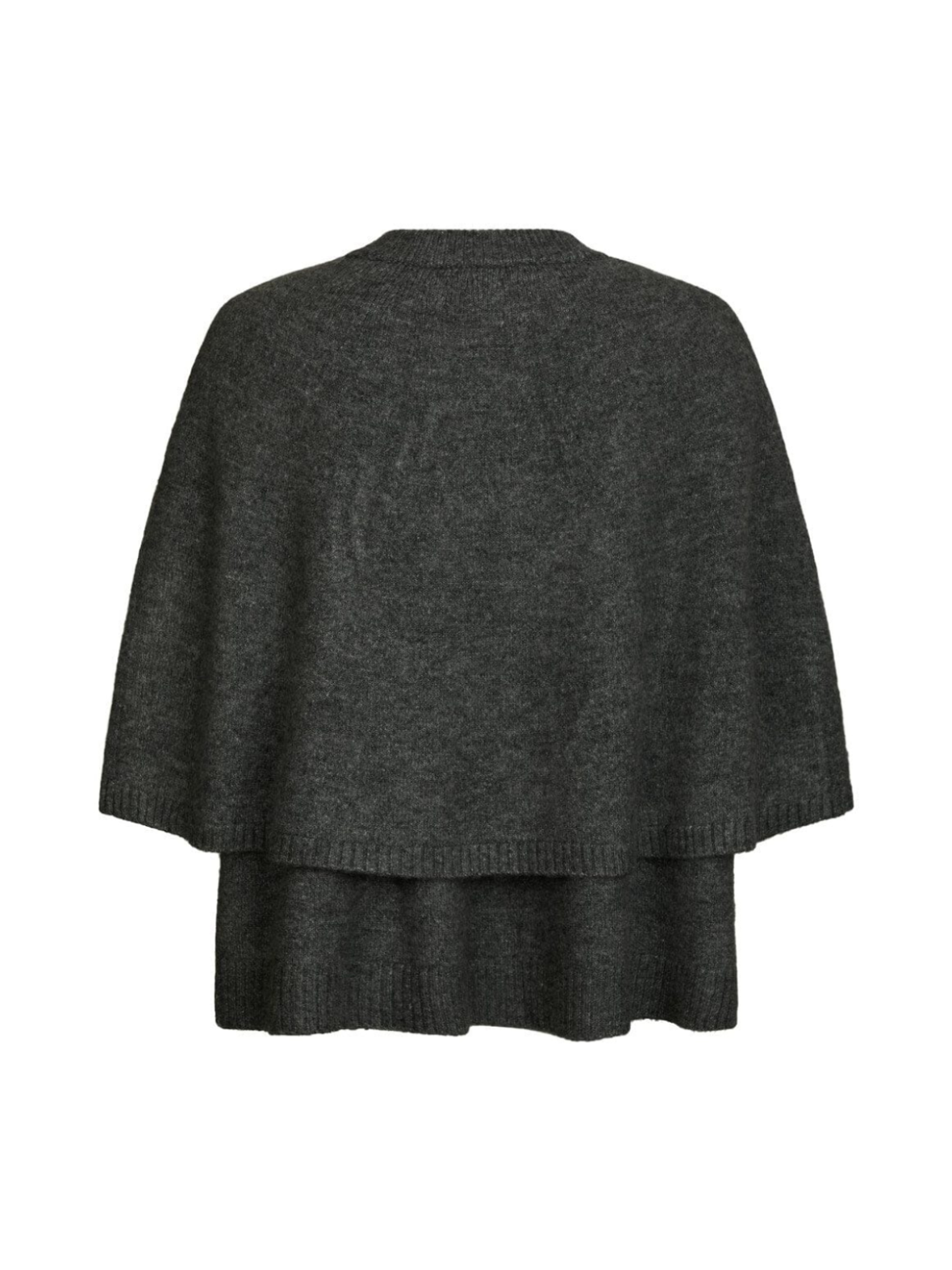 Denne grå strikcape er både elegant og cozy – den perfekte layering-piece til efterår og vinter. Det dobbelte lag og de flotte knapper giver et eksklusivt udtryk, mens den bløde kvalitet gør den behagelig at have på. Brug den over en skjorte eller strik for ekstra varme.