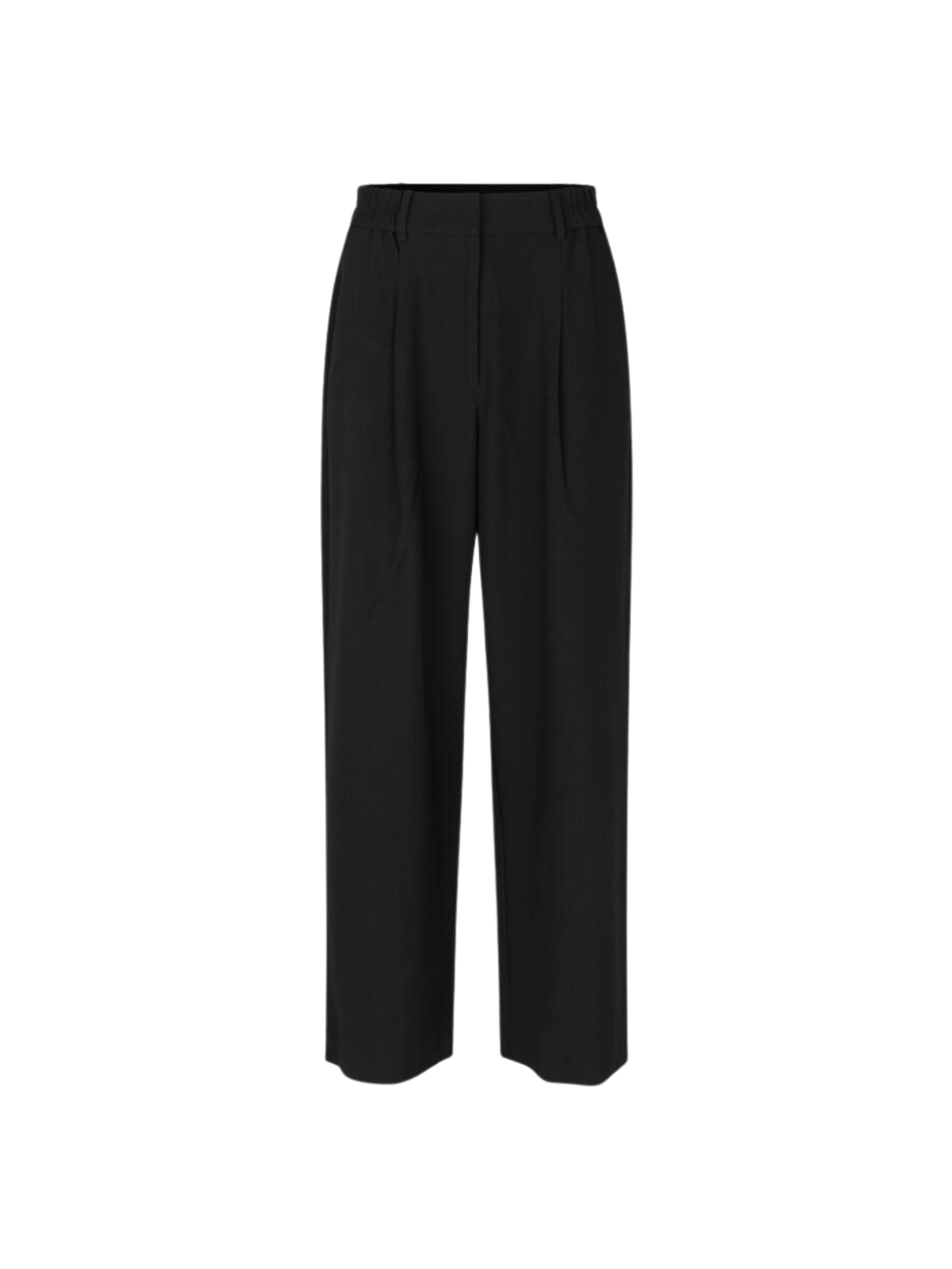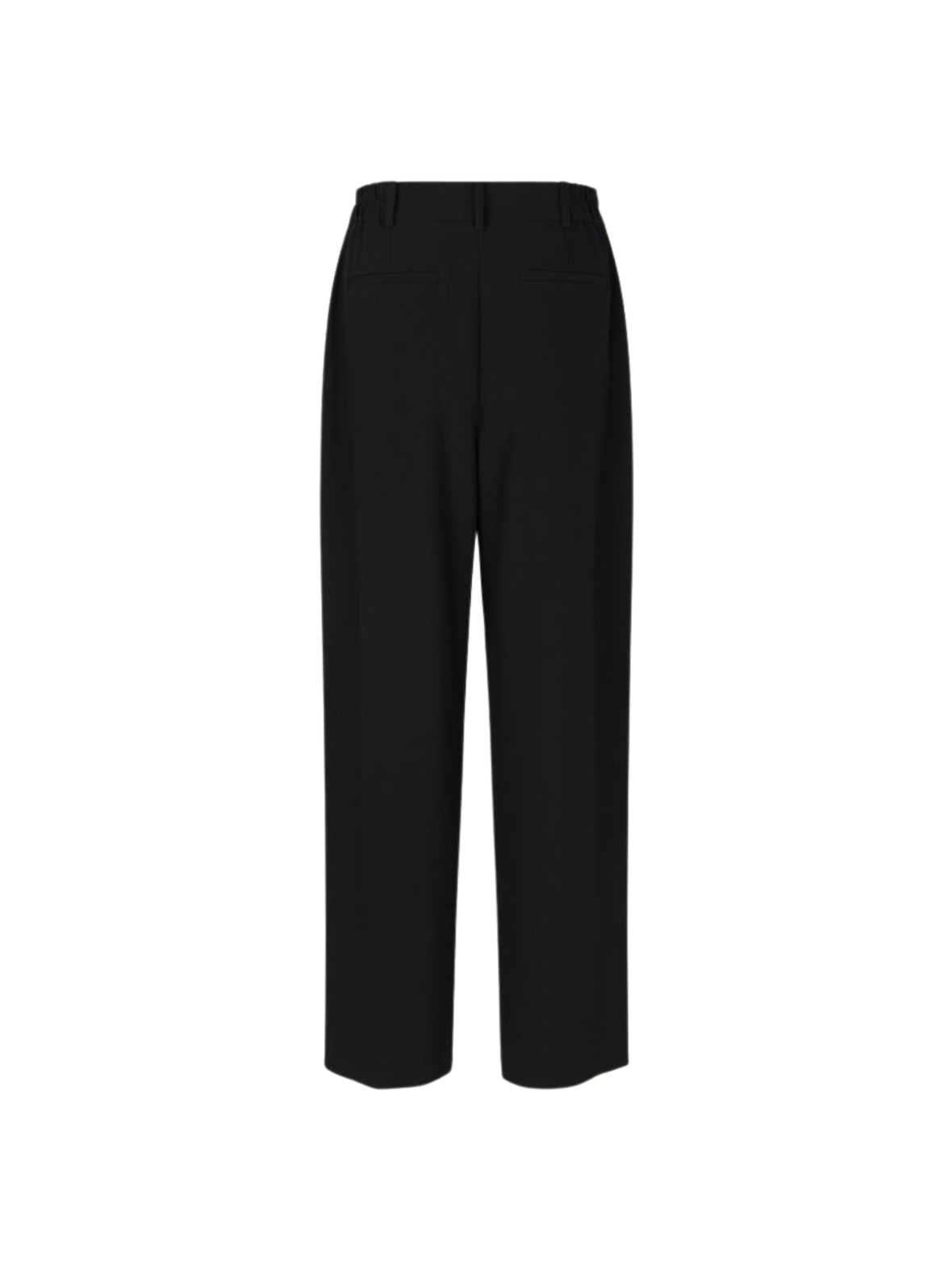 Klassiske bukser i sort med et elegant og tidløst udtryk. Den højtaljede pasform og lige ben skaber en flatterende silhuet med et stilrent look. Designet med diskrete læg og en enkel linje, der giver et sofistikeret finish. Perfekte til både kontoret og mere formelle anledninger.
