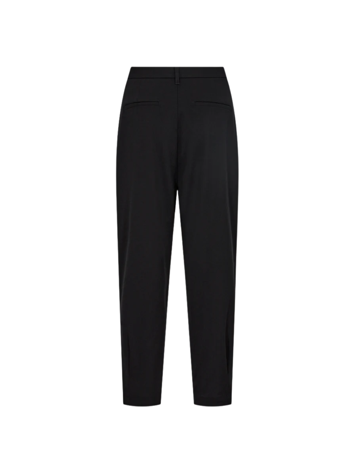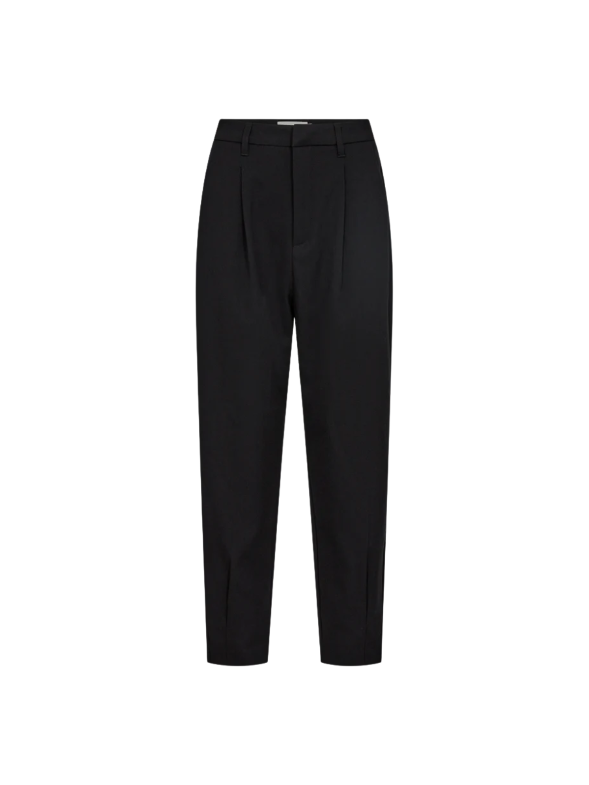 Klassiske sorte bukser med et tidløst og elegant udtryk. Bukserne har en pæn, lige pasform med let tilspidsede ben, som giver et flot og stilrent look. De er designet med fast linning, bæltestropper og diskrete læg foran, der sikrer både komfort og en elegant silhuet. Stoffet falder smukt og gør bukserne velegnede til både hverdag og mere formelle anledninger. Brug dem med en skjorte eller blazer for et sofistikeret outfit – eller med en enkel top for et mere afslappet, men stadig velklædt look.