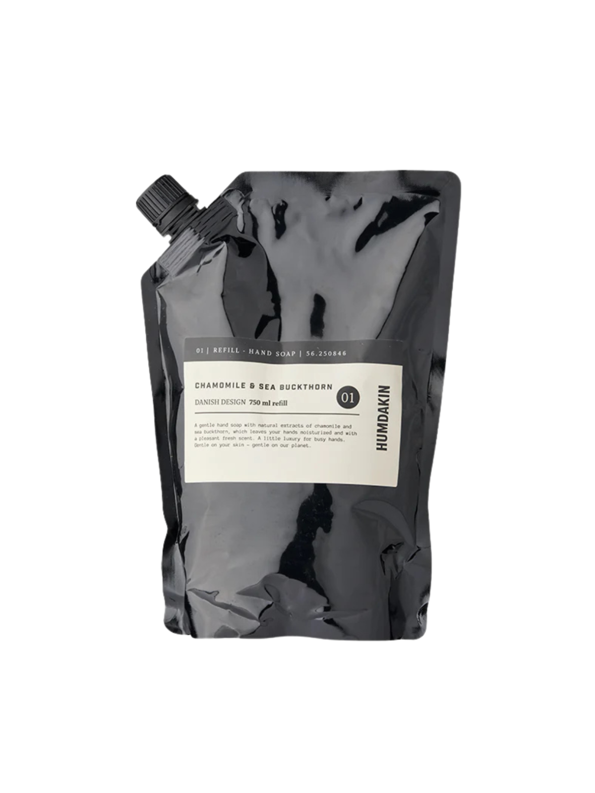 Denne refill håndsæbe fra Humdakin er en praktisk og mere bæredygtig løsning til genopfyldning af din sæbedispenser. Den milde formel renser hænderne skånsomt og efterlader huden blød og velplejet. Duften af kamille og havtorn giver en rolig og frisk oplevelse ved hver håndvask. Perfekt til dig, der ønsker at kombinere funktionalitet med omtanke for hverdagen.
