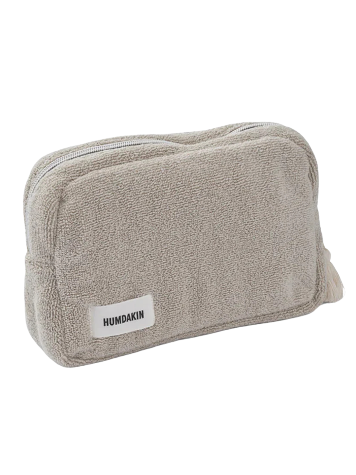 Denne toilettaske fra Humdakin er lavet i blød frottékvalitet i en lys, neutral nuance. Den rummelige form gør den ideel til opbevaring af plejeprodukter, både derhjemme og på farten. Lynlåslukningen holder indholdet sikkert samlet, mens det enkle design giver et roligt og stilrent udtryk. Perfekt som kosmetiktaske, rejsetaske eller til hverdagens små essentials.