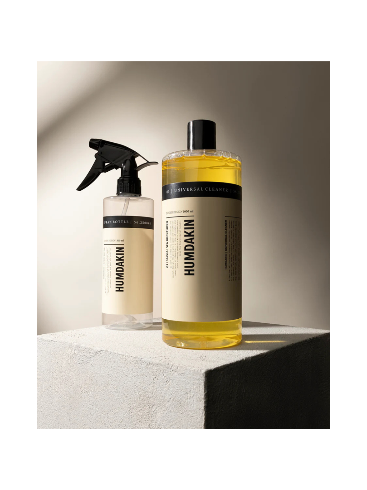 Ønsker du at bruge Humdakins sprayflaske, kan du lave 200 opfyldninger og dermed spare 198 tomme emballager ved at købe 1 liter koncentreret universalrengøring samt 1 sprayflaske. Du skal kun bruge 3-5 ml Humdakin universal rengøring (= 1 teske), komme det i din tomme sprayflaske og derefter fylde den op med lunket vand. Så er du klar til din rengøring.