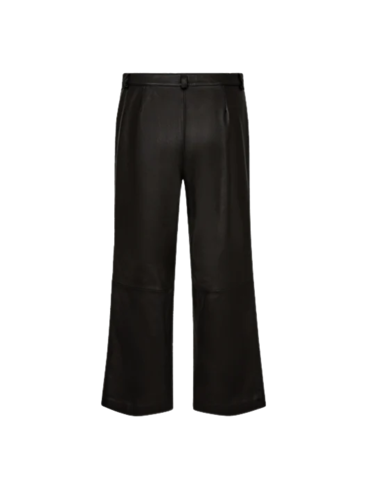 Disse bukser har et stilrent og moderne udtryk med deres glatte, læderlignende finish. De er designet med en flatterende, let udvidet benvidde, som giver et elegant fald og en tidløs silhuet. Bukserne har en klassisk linning med bæltestropper samt knap- og lynlåslukning foran. Den strukturerede syning ved knæene tilføjer et diskret, grafisk element, der understreger det eksklusive look. Perfekte til både hverdag og aften, hvor de nemt kan styles med alt fra en enkel strik til en feminin bluse eller en skarp blazer.