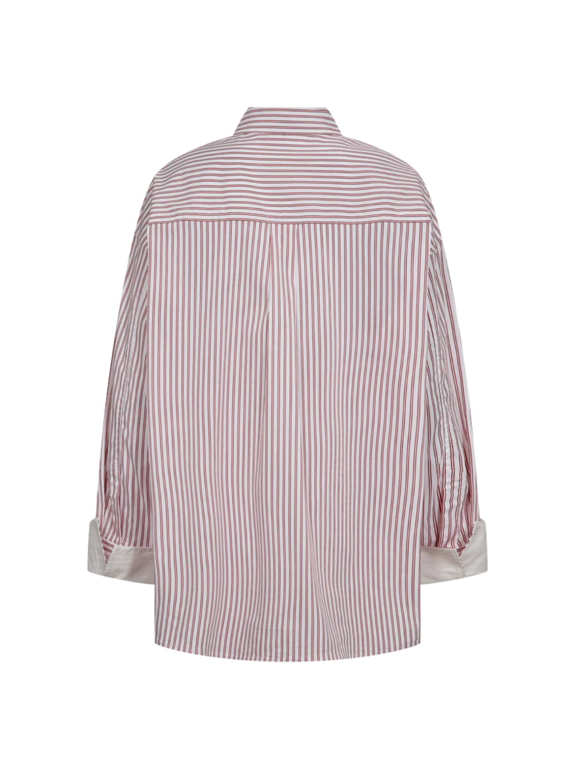 Denne skjorte har et klassisk og afslappet udtryk med fine, lodrette striber, der giver et let og tidløst look. Den er designet med krave, gennemgående knaplukning og lange ærmer med brede manchetter, som kan styles både nedrullet og opsmøget. Pasformen er let oversize og giver et moderne, ubesværet fald. En alsidig skjorte, der fungerer lige godt til jeans, bukser eller over en top for et lag-på-lag-look.