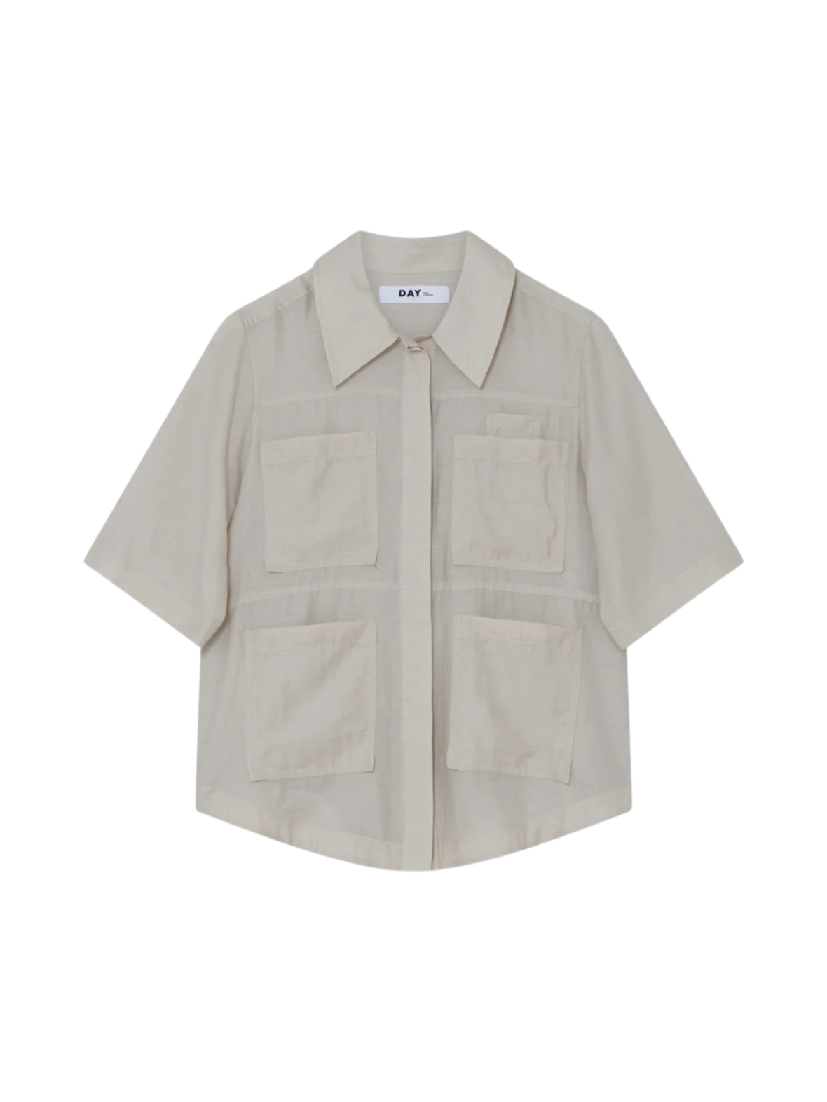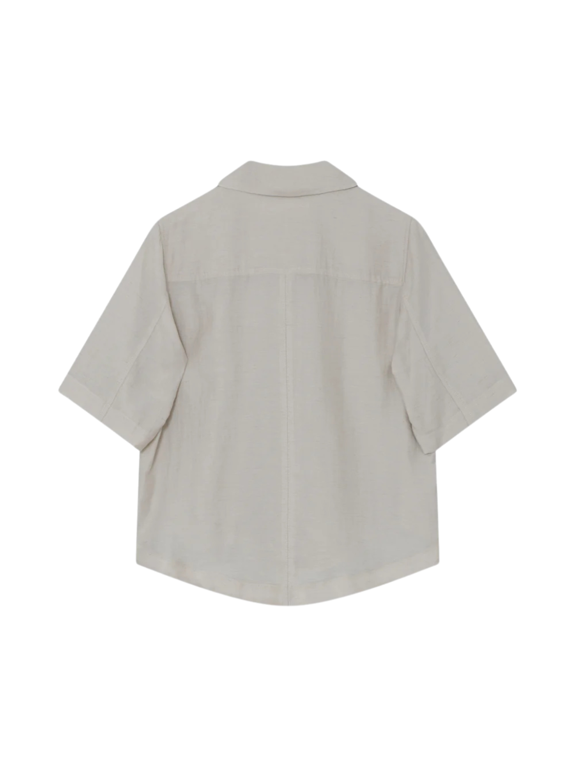 Denne lyse skjorte har et afslappet og moderne udtryk med et rent, minimalistisk design. Den er udført i et let og behageligt materiale, som giver et naturligt fald og en komfortabel pasform. Skjorten har korte ærmer, klassisk krave og skjult lukning foran, der giver et elegant og roligt look. De fire påsatte frontlommer tilfører et funktionelt og stilrent touch. Perfekt som en let overskjorte til hverdagsbrug og nem at style både åben over en top eller lukket for et mere struktureret udtryk.