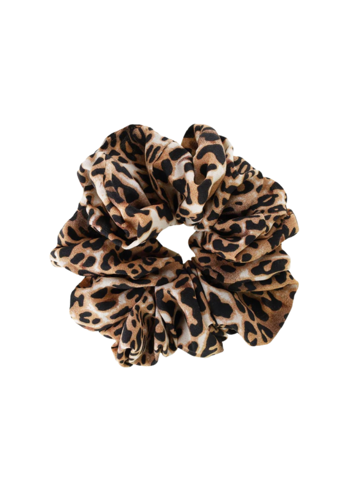 Denne scrunchie med leopardprint tilføjer et trendy og legende touch til dit look. Det bløde stof er behageligt mod håret og giver et fyldigt udtryk, samtidig med at elastikken sikrer et godt og skånsomt hold. Perfekt til både hverdagsbrug og når du vil pifte dit outfit lidt op med en iøjnefaldende detalje.