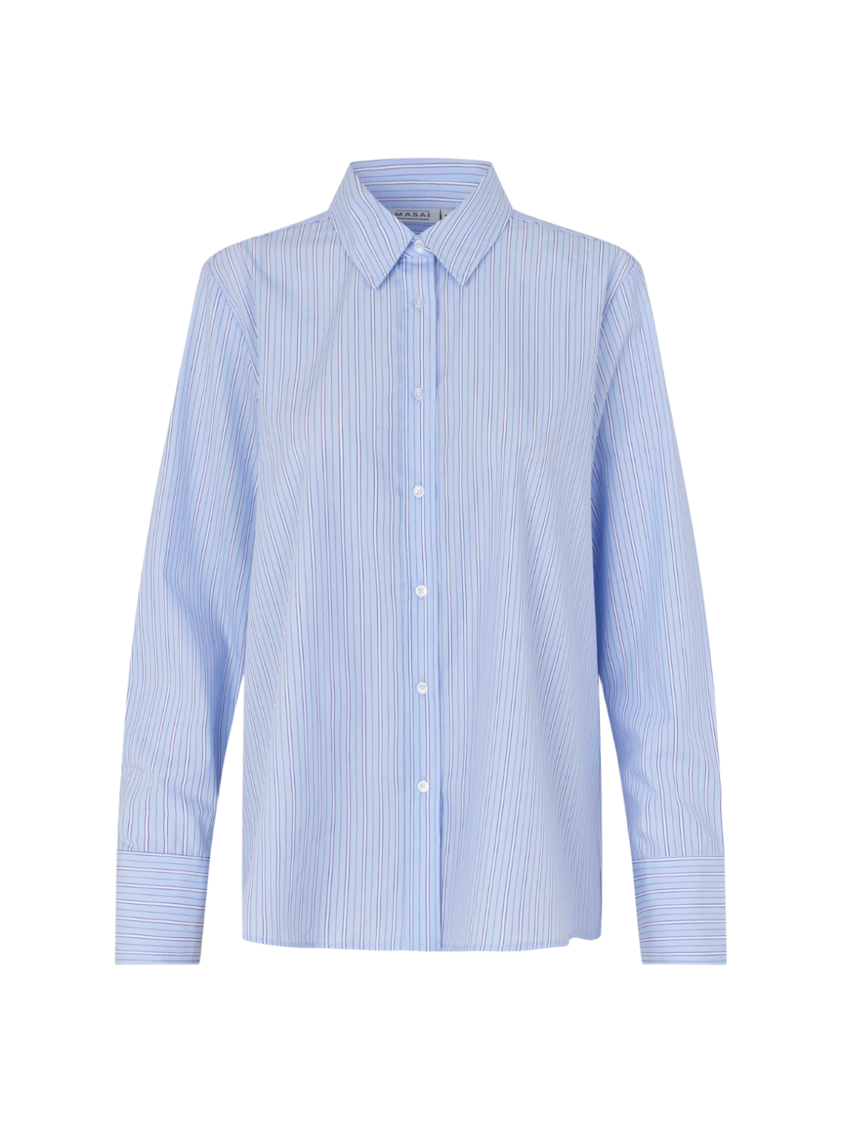 Denne klassiske skjorte fra Masai er et stilrent valg, der kombinerer tidløst design med høj komfort. Skjorten er udført i en let og blød kvalitet, som falder flot og giver en behagelig pasform hele dagen. Det fine, vertikale stribemønster i lyseblå nuancer giver et elegant og friskt udtryk, der er nemt at style – både til arbejde og mere afslappede anledninger. Skjorten har klassisk krave, gennemknapning og lange ærmer med manchetter, hvilket understreger det rene og velklædte look.
