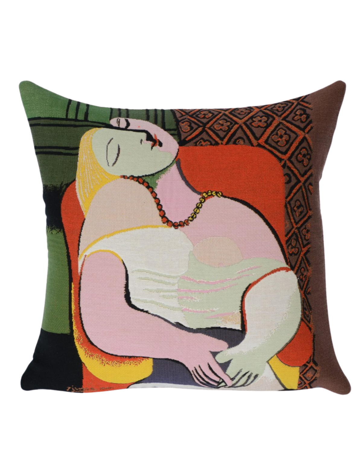 Denne pyntepude fra Poulin Design er vævet med et farverigt og kunstnerisk motiv, der leder tankerne hen på klassisk malerkunst. De varme nuancer i orange, grøn og rosa skaber et blødt, indbydende udtryk med masser af personlighed. Puden fungerer perfekt som et dekorativt statement i sofaen, lænestolen eller på sengen. En kunstpude, der tilfører hjemmet både varme, dybde og karakter.