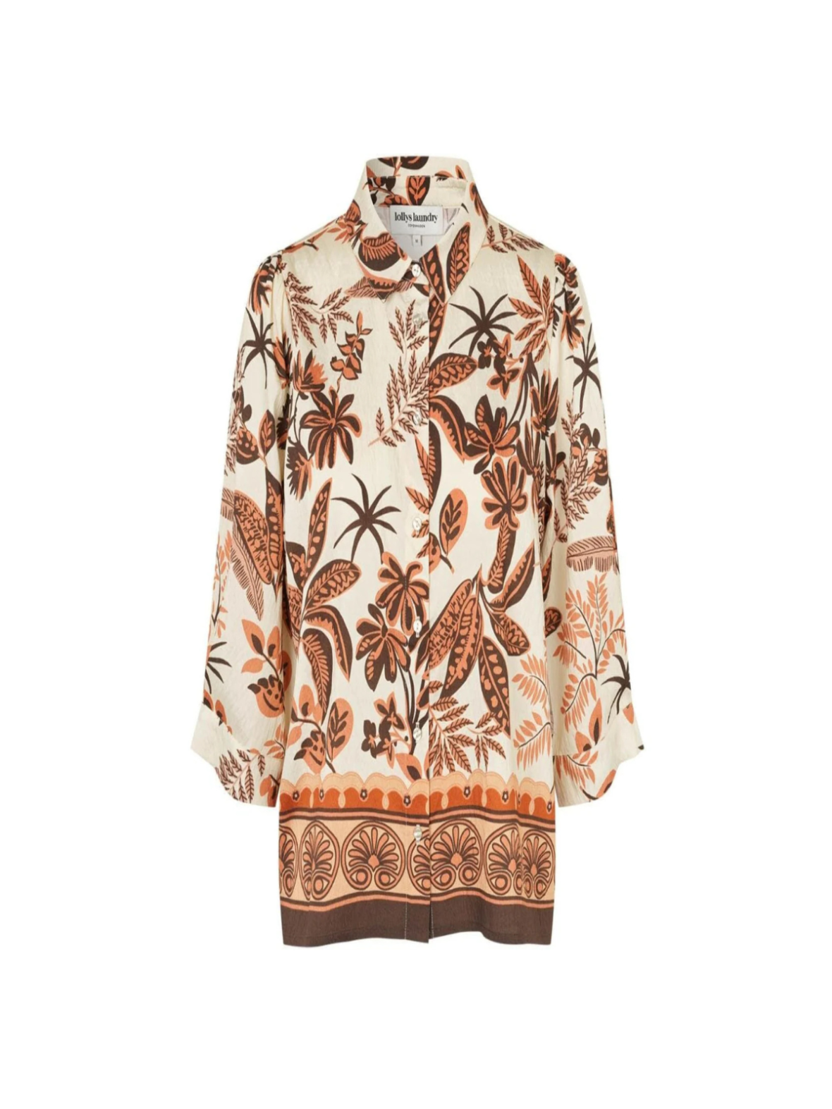 Denne smukke skjorte fra Lollys Laundry kombinerer et iøjnefaldende, botanisk print med et afslappet og feminint snit. Skjorten er designet i en blød, let kvalitet, der falder flot og føles behagelig mod huden. Det varme farvespil i nuancer af creme, brun og orange giver et elegant, men samtidig afslappet udtryk.
