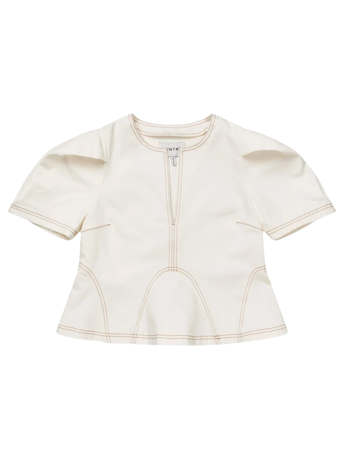 En lys, kortærmet top med et elegant og minimalistisk udtryk. Designet er kendetegnet ved dekorative stikninger, der fremhæver snittet og giver et let struktureret look. Den diskrete åbning ved halsen tilfører et feminint og moderne touch. Toppen har en let A-formet pasform, som falder smukt og er behagelig at have på.
