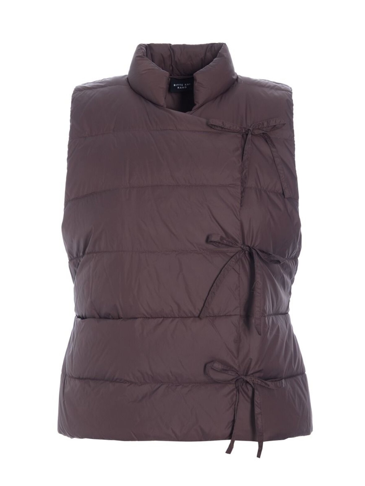 Moderne og cool quiltet vest i en smuk, dyb brun nuance. Den høje krave og de fine bindebånd i siden giver et feminint twist til det sporty udtryk, mens den lette polstring sikrer komfort og varme. En alsidig style, der er perfekt til lag-på-lag i overgangssæsonen. Brug den over en strik eller skjorte for et afslappet hverdagslook – eller style den med matchende toner for et gennemført og trendy outfit.
