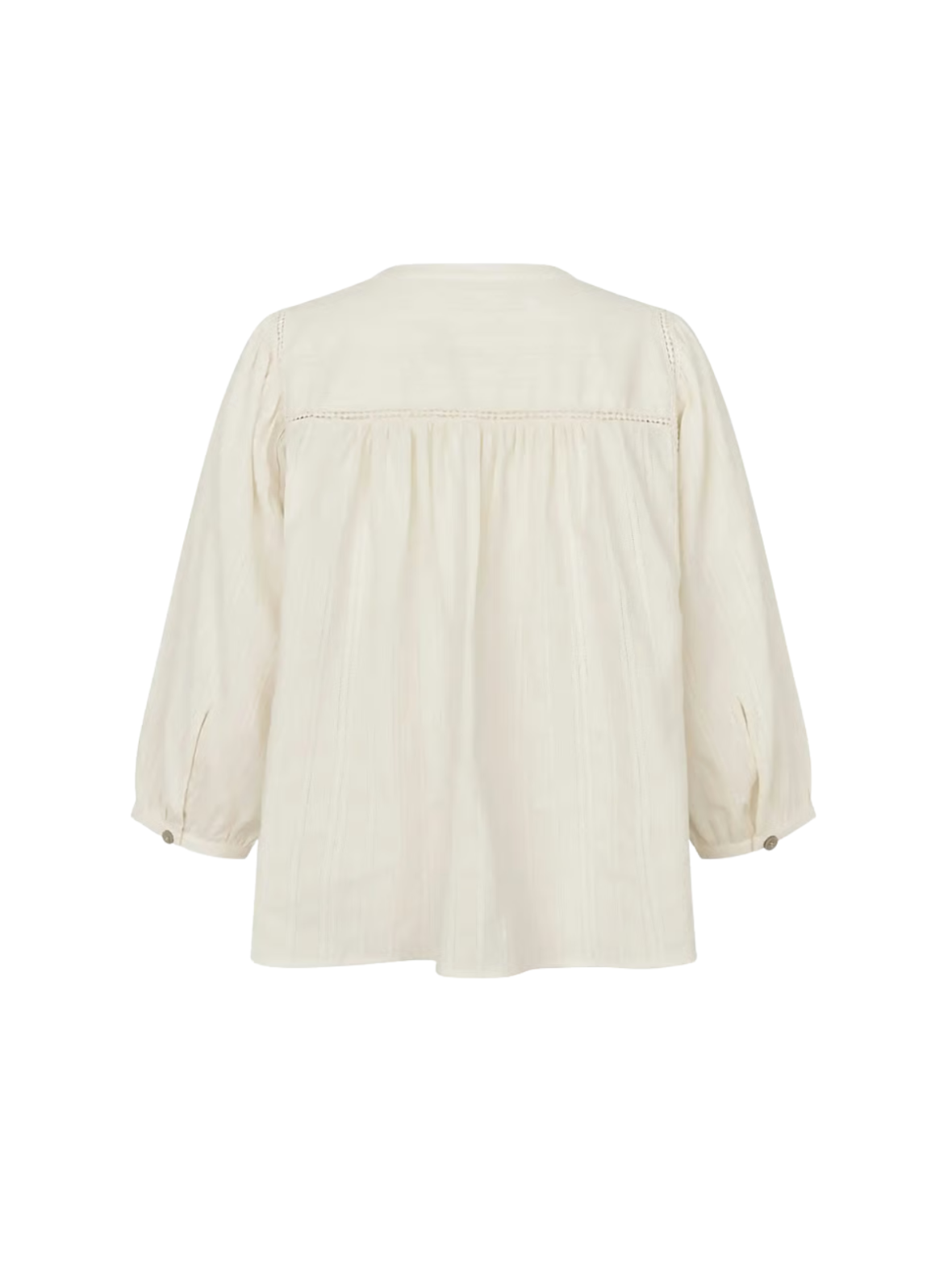 Let og feminin top i en smuk hvid nuance med et enkelt og tidløst udtryk. Den løse pasform giver en behagelig komfort og et elegant fald, som gør den nem at style til enhver lejlighed. Perfekt som basis i garderoben – både til hverdag og pænere brug. Style den med jeans for et afslappet look eller med en nederdel eller klassiske bukser for et mere sofistikeret og stilrent outfit.