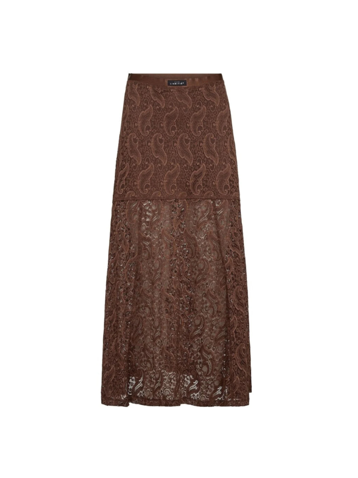 Elegant blonde nederdel i en varm mocca nuance med smukke transparente detaljer, der skaber et let og feminint udtryk. Den tætsiddende overdel kombineret med den let udvidede bund giver en flatterende silhuet og et elegant fald. Style den med den matchende lace tee for et gennemført sæt, eller kombinér med en enkel top for et mere afdæmpet look. En sofistikeret nederdel, der balancerer romantik og moderne kant.