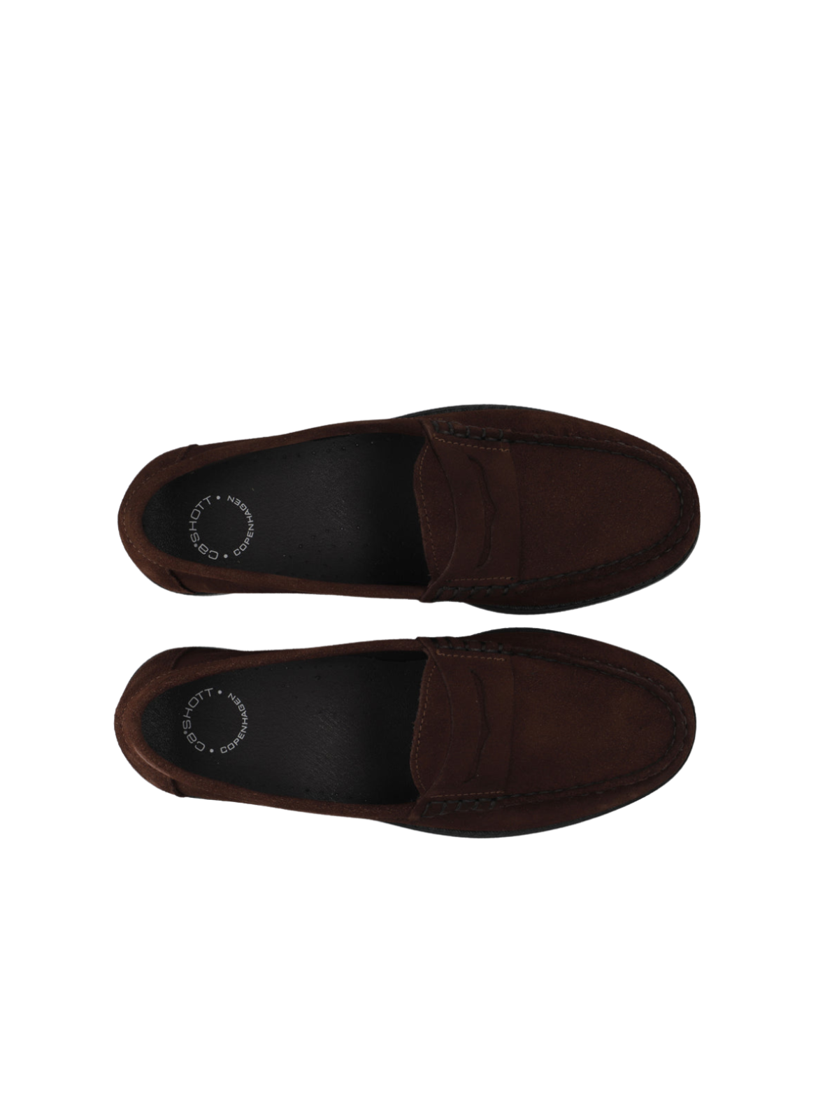 Klassisk loafer i en smuk, mørkebrun nuance med tidløst og elegant udtryk. Den bløde skindkvalitet og de fine syningsdetaljer giver skoen et eksklusivt look, mens den flade sål sikrer komfort hele dagen. En alsidig style, der passer perfekt ind i den moderne garderobe. Brug dem til habitbukser for et sofistikeret outfit – eller style dem med jeans og strik for et afslappet, men stilrent hverdagslook.