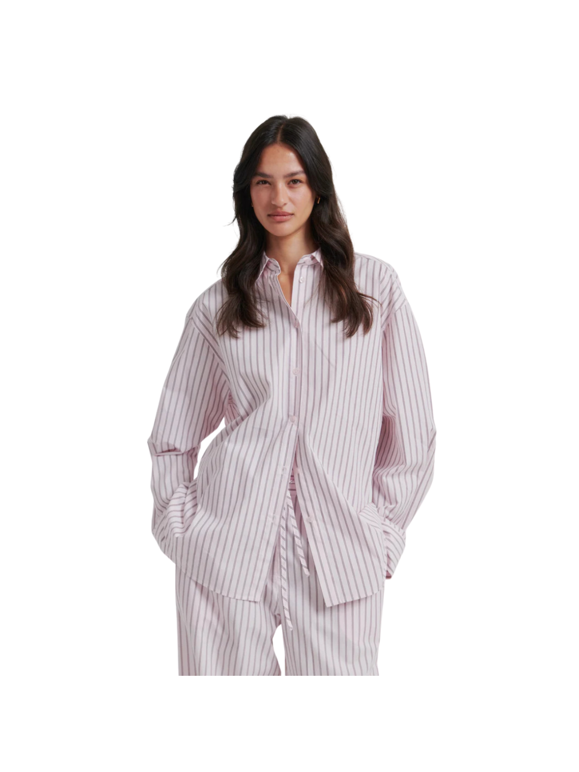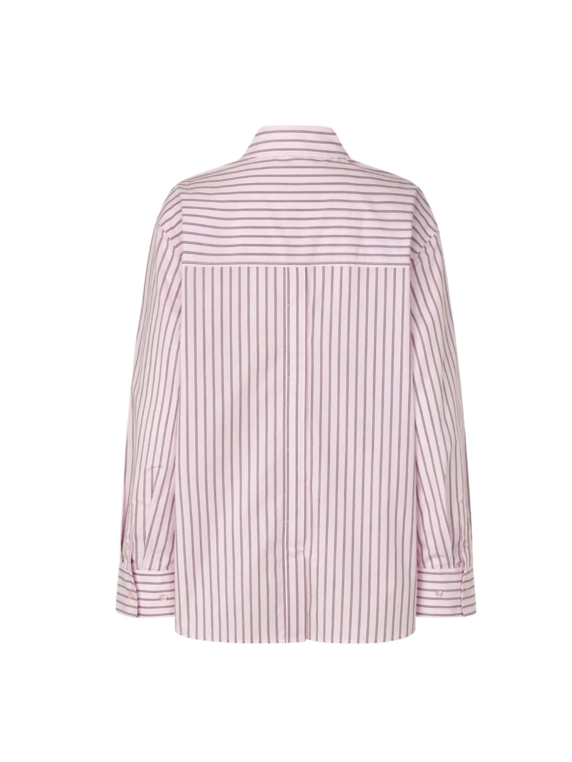 Klassisk skjorte i en blød lyserød nuance med fine, lodrette striber. Den løse pasform, de brede manchetter og den klassiske krave giver et moderne og stilrent udtryk. En tidløs style, der passer perfekt ind i både hverdags- og kontorgarderoben. Style den med jeans for et afslappet look – eller med habitbukser og loafers for en mere elegant og sofistikeret styling.
