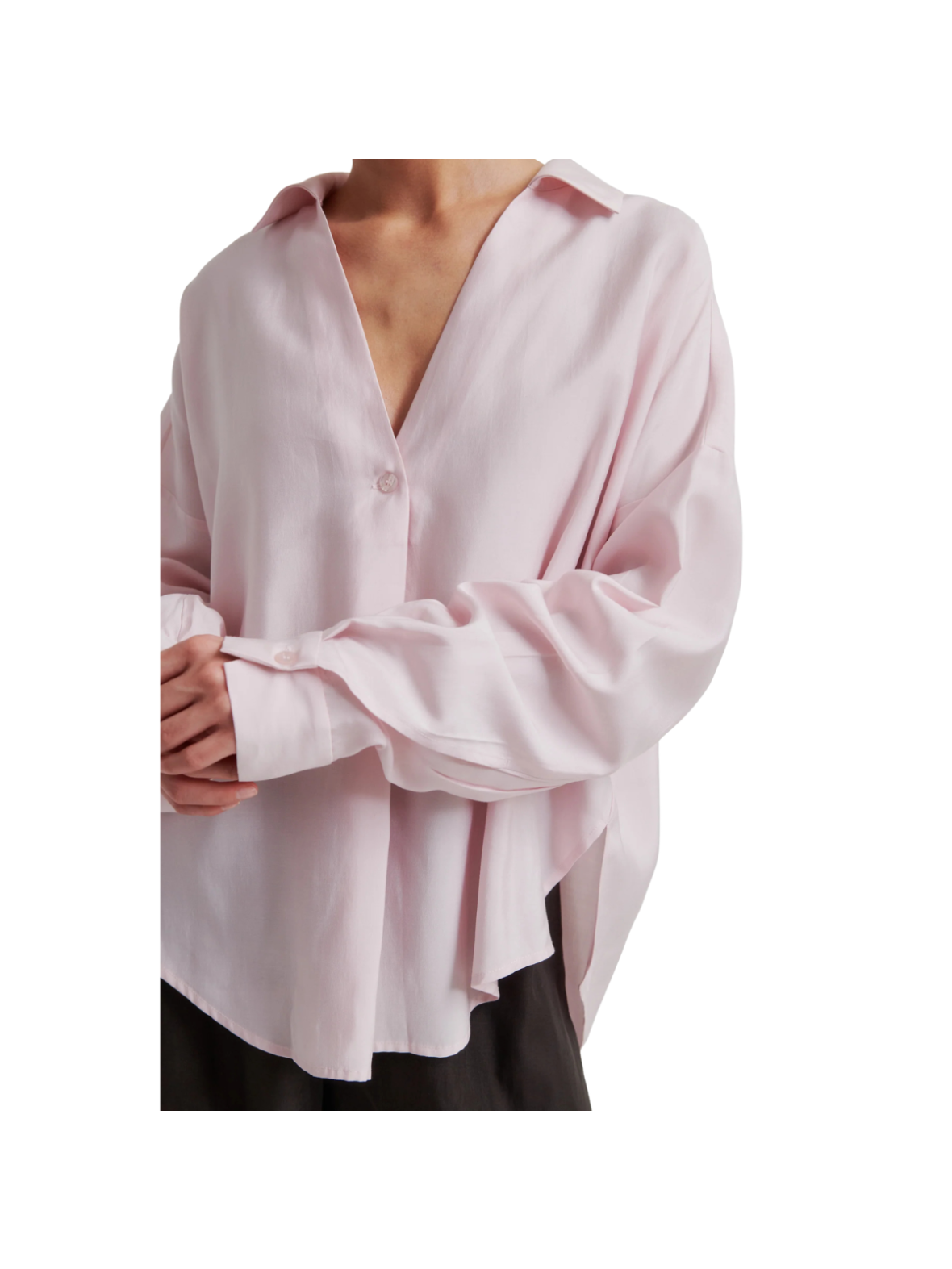 Elegant skjorte i en smuk, lyserød nuance med et let og feminint udtryk. Den afslappede pasform og den åbne krave giver et moderne look, mens det bløde materiale falder flot og føles behageligt mod huden. En alsidig style, der nemt kan bruges til både hverdag og mere formelle anledninger. Style den med jeans og sneakers for et casual look – eller med habitbukser og loafers for en mere sofistikeret styling.