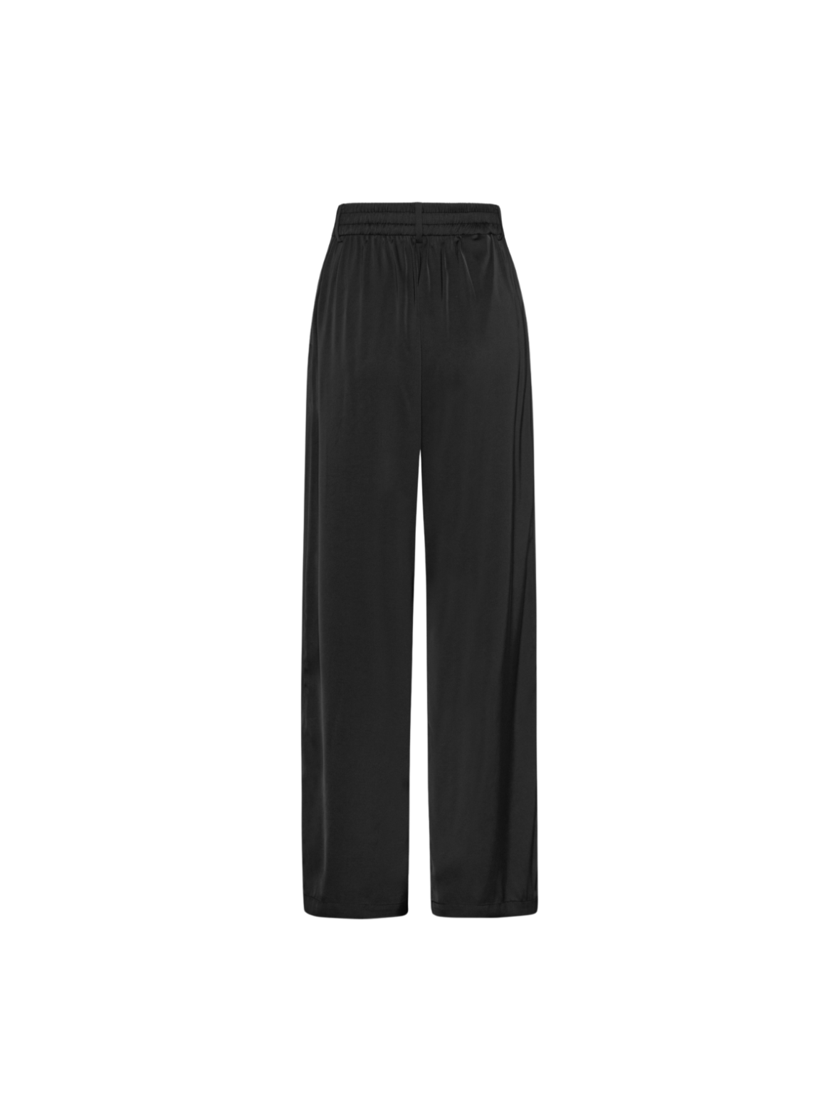 Elegante bukser i klassisk sort med høj talje og vid, flatterende pasform. De fine læg foran giver et sofistikeret udtryk og sikrer et flot fald i det lette materiale. En tidløs style, der passer perfekt til både hverdag og mere formelle anledninger. Style dem med en skjorte og hæle for et elegant look – eller med en strik og sneakers for en afslappet, stilren styling.