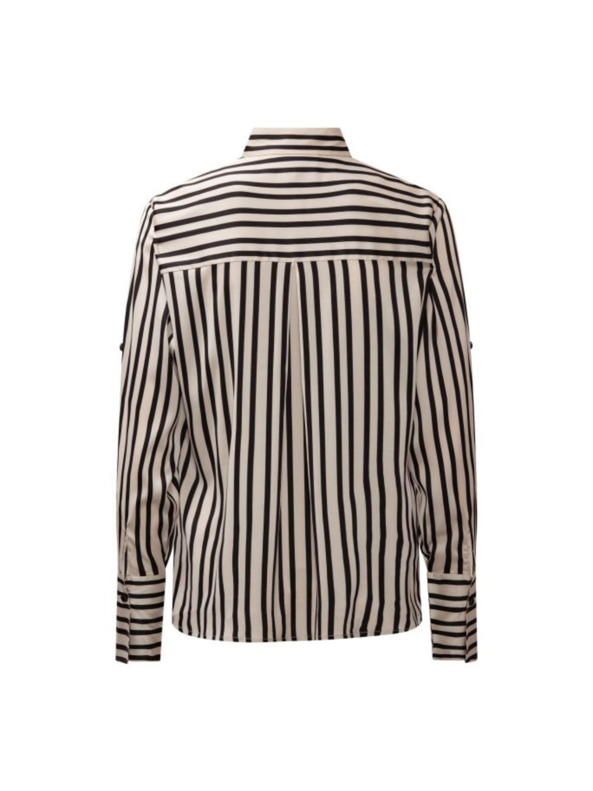 Stilfuld skjorte i en elegant creme og sort stribet kvalitet, der giver et moderne og grafisk udtryk. Den klassiske krave og knaplukning tilfører et tidløst look, mens brystlommen skaber en cool detalje. Den lette kvalitet gør den behagelig at have på hele dagen. Perfekt til både arbejde og stilfulde hverdagsoutfits.