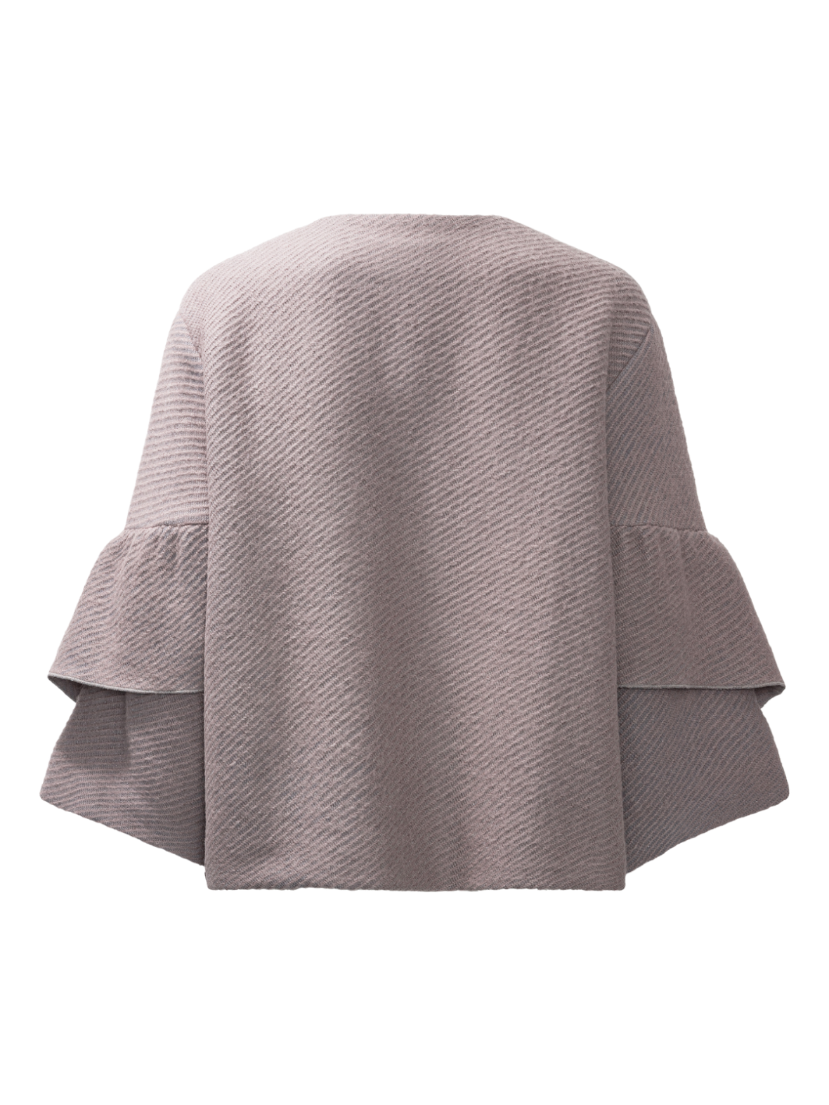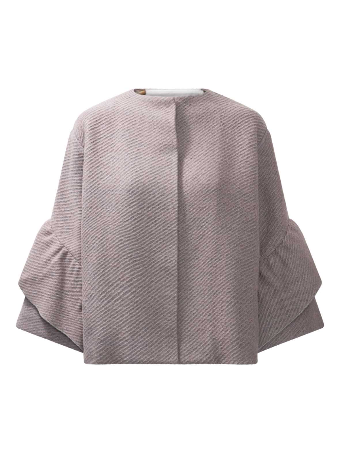 Elegant jakke i en smuk støvet rosa nuance med eksklusiv struktur i stoffet. Den korte, boxy pasform og de brede ærmer giver et moderne og sofistikeret udtryk, mens de dekorative knapper tilfører et feminint touch. Indersiden med det fine blomsterprint giver jakken et ekstra luksuriøst finish. Perfekt over en kjole til festlige anledninger – eller style den med jeans og en enkel top for et stilrent hverdagslook.