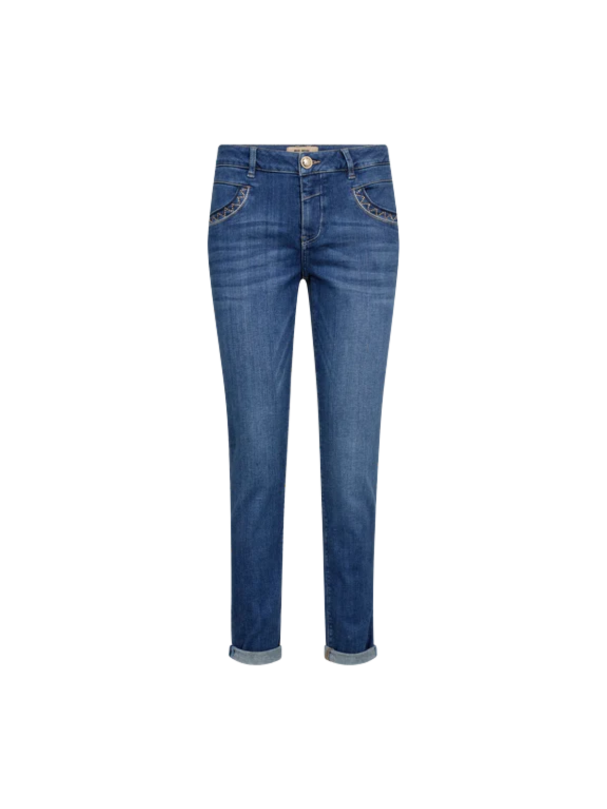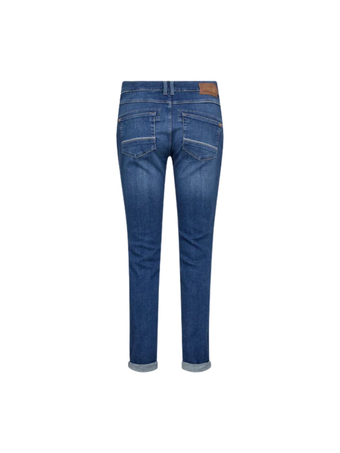 Klassiske jeans i en flot blå vask med et tidløst og afslappet udtryk. Den tætsiddende pasform giver en flatterende silhuet, mens det lette stretch sikrer god komfort. De opsmøgede ben tilfører et casual og moderne touch. Perfekte til både hverdag og mere stilfulde outfits.