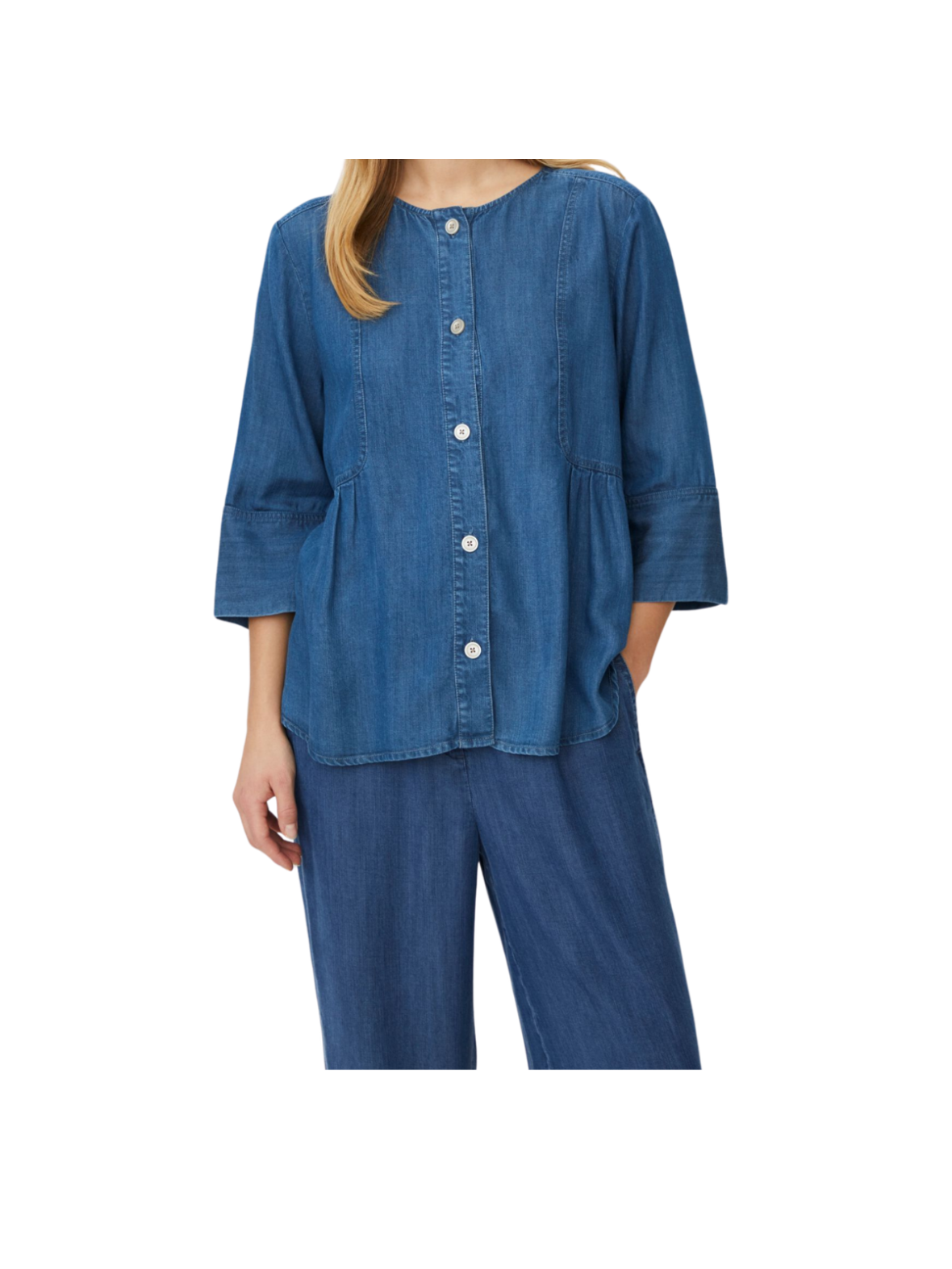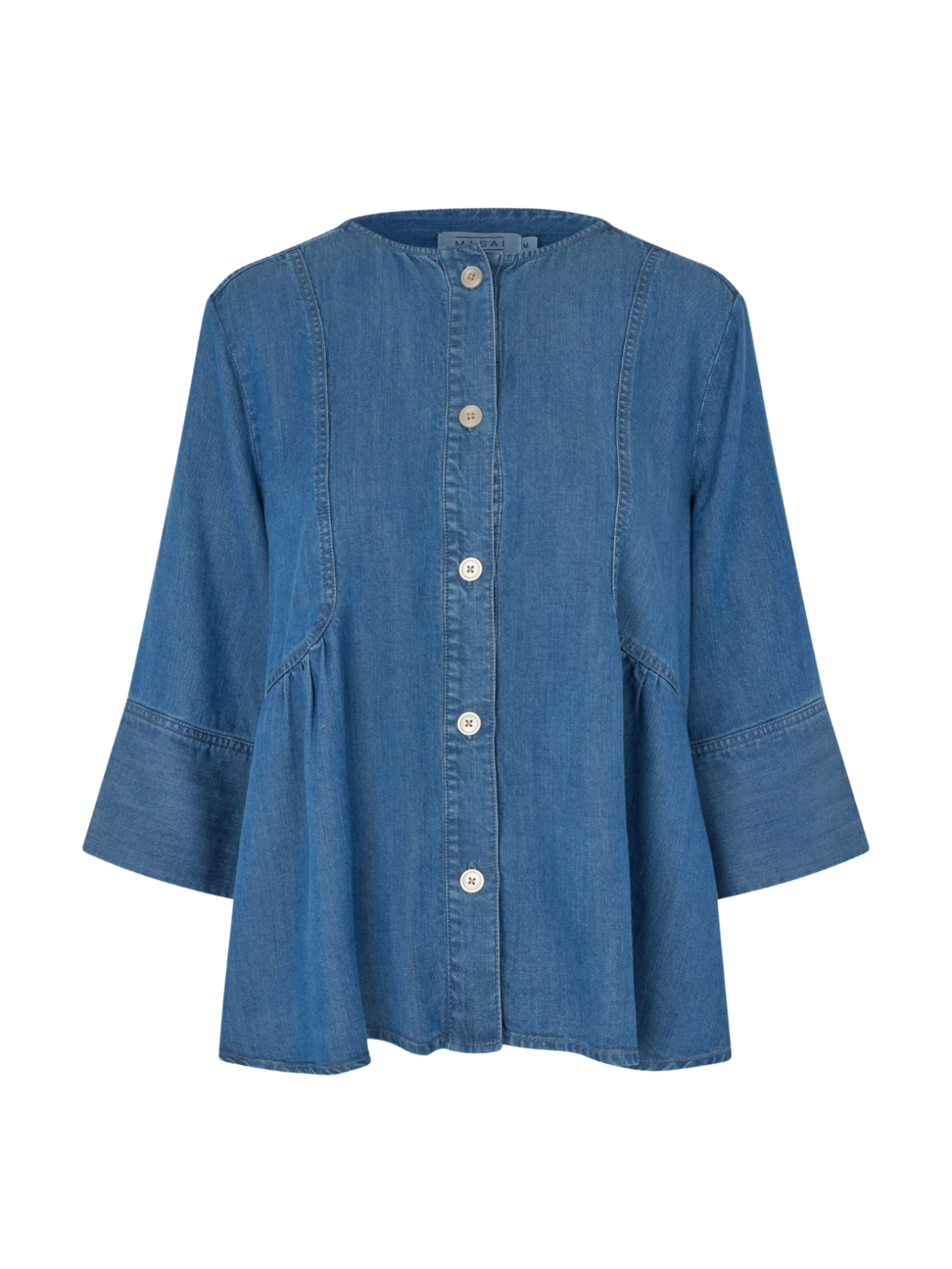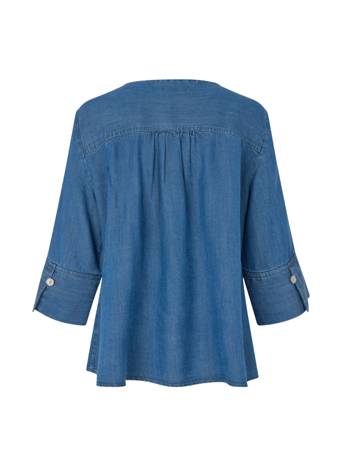 Let og feminin denimbluse i en smuk blå vask med fine, afslappede detaljer. Den løse pasform og brede ærmer giver et moderne og komfortabelt udtryk. Style den med matchende jeans for et cool denimlook eller med lyse bukser for en mere let og sommerlig styling. En alsidig bluse, der kombinerer casual stil med feminin charme.