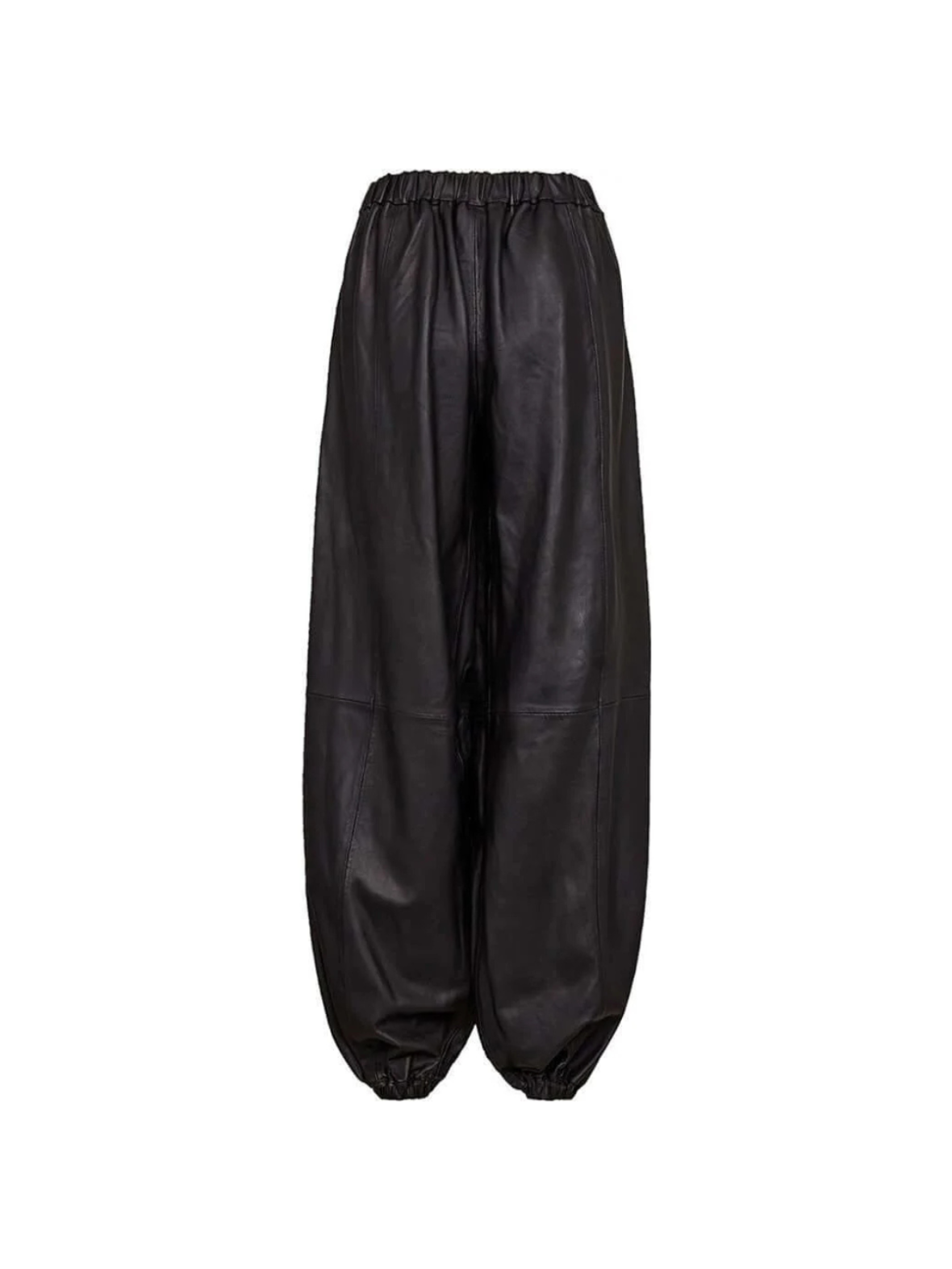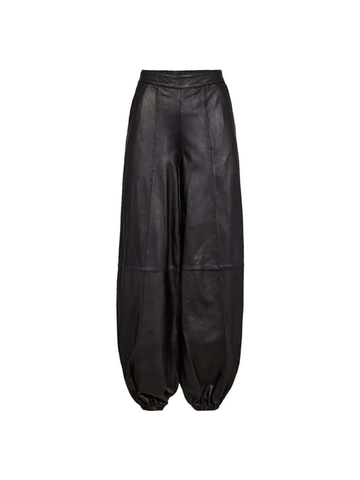 Eksklusive ballonbukser i blødt lammeskind med et moderne og iøjnefaldende udtryk. Den løse pasform og elastiske afslutning ved anklerne skaber en cool silhuet med masser af karakter. Style dem med en enkel top eller skjorte for at lade bukserne stå i fokus. Et statement-piece, der kombinerer luksus, komfort og kant.